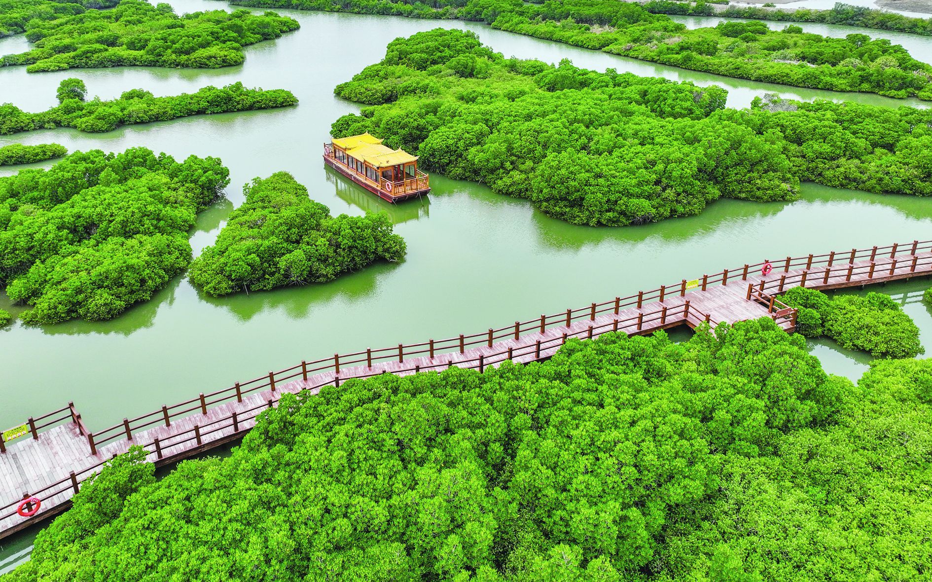 金牛岛红树林,繁茂植被与水道相映。 记者张锋锋 摄