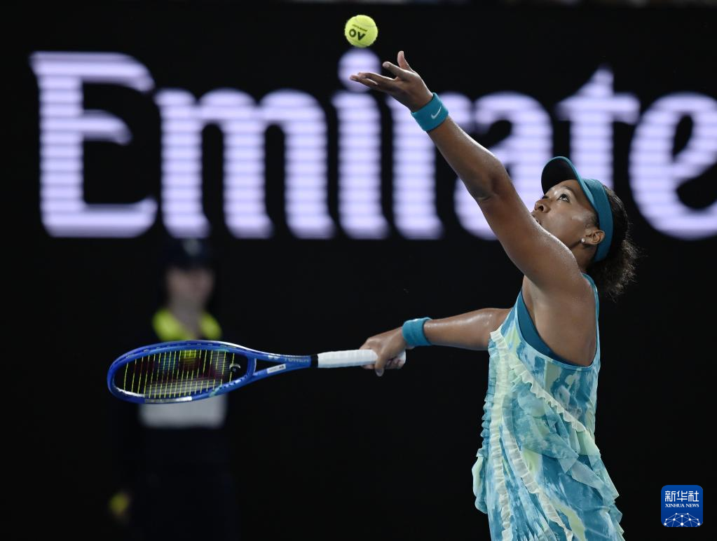 1月20日,大坂直美在比赛中发球。