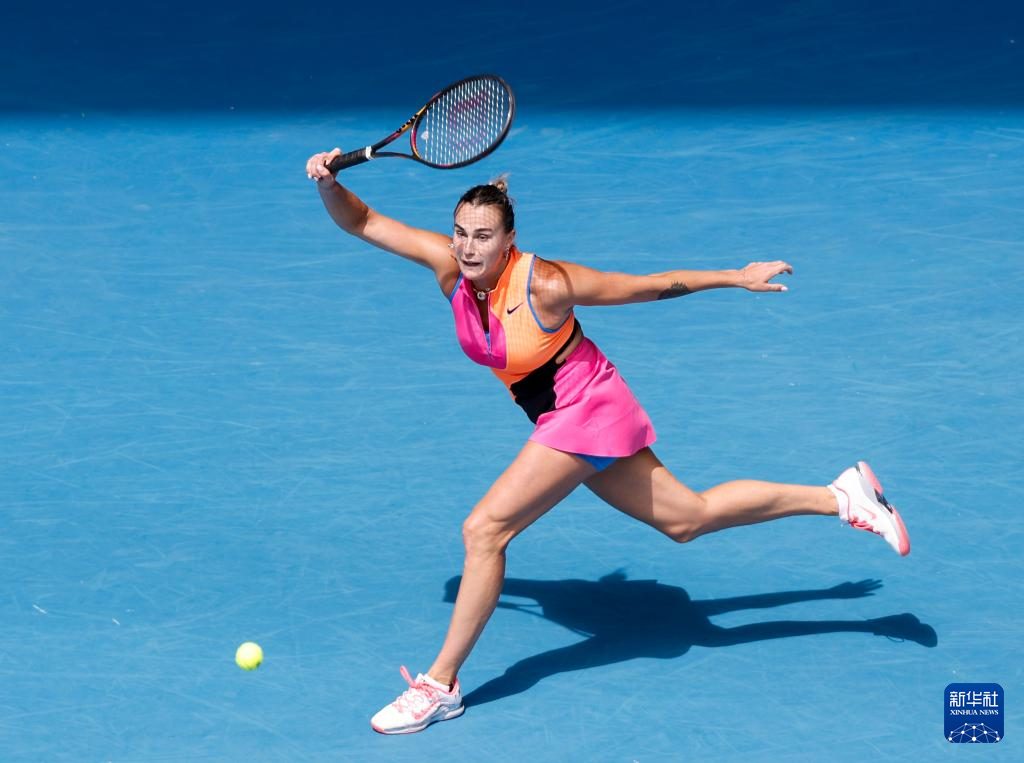 1月25日,萨巴伦卡在比赛中回球。