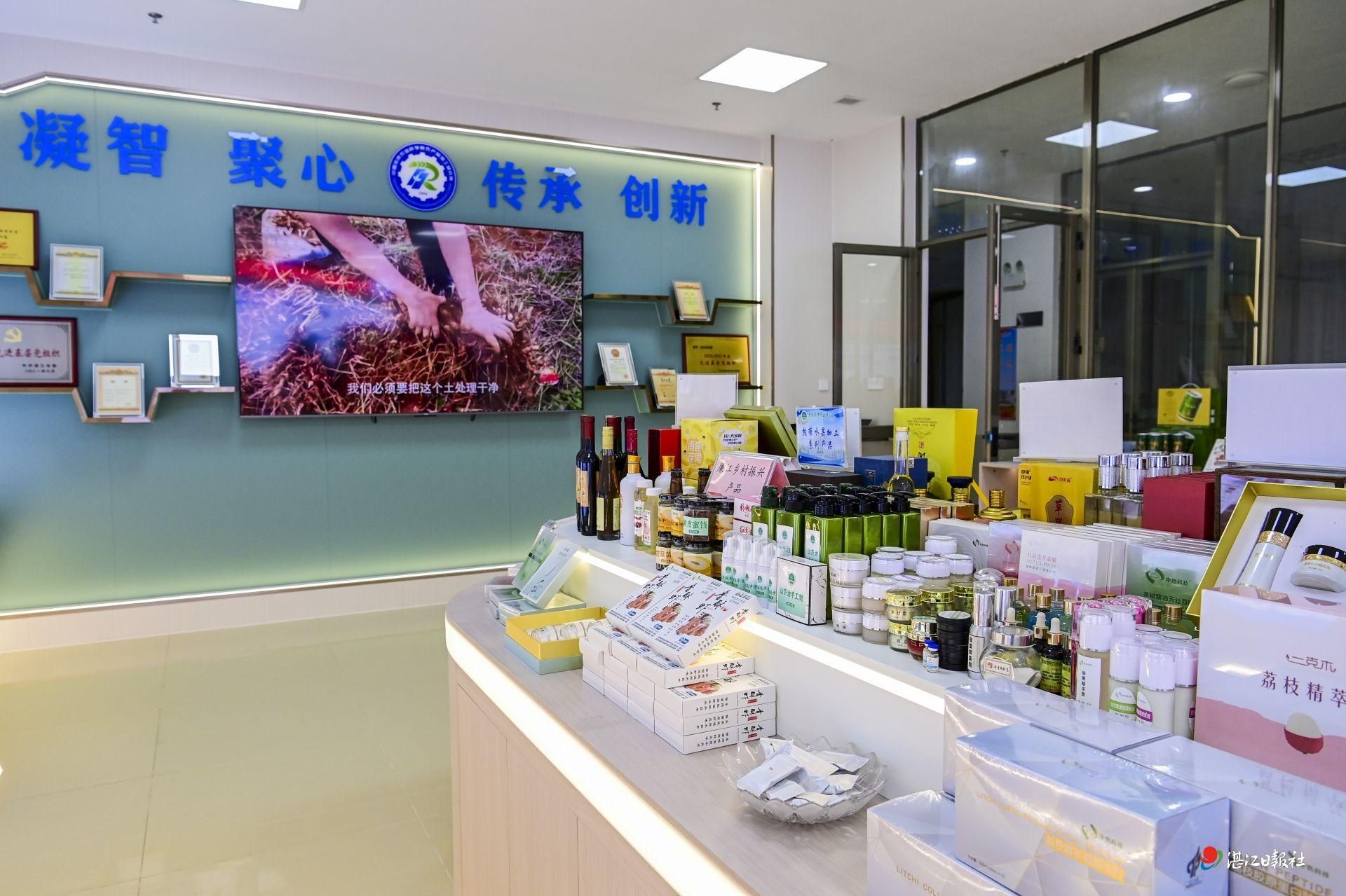 中国热带农业科学院农产品加工研究所展厅,各类产品琳琅满目。