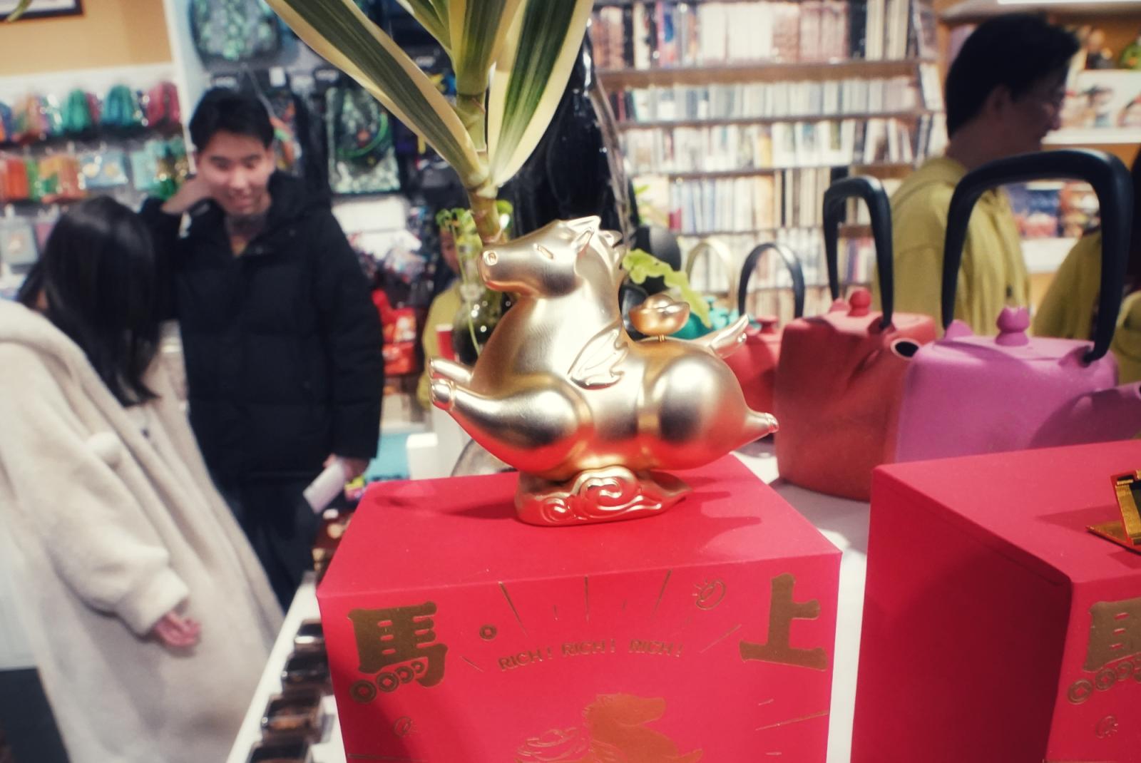 2月8日上午,国家大剧院周末音乐会——“新春乐蕴”北京交响乐团音乐会散场后,不少观众信步走入艺术生活馆,“马踏祥云”福贴、“艺马当先”鼠标垫和红包等既实用又带有好彩头的文创产品,用现代的设计诠释着生肖文化。