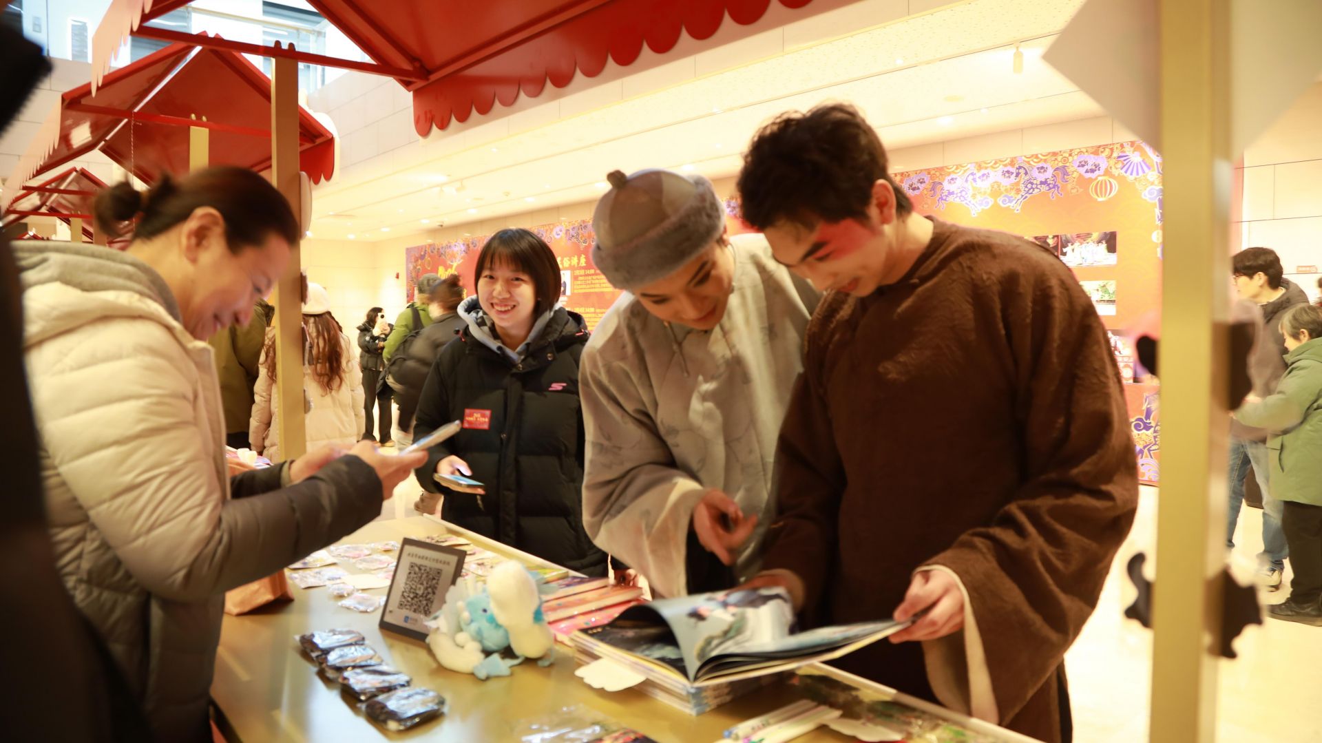 这是天桥艺术中心“艺起过年”活动中的生动一幕。在剧场标志性的仿古戏楼下,以《天工开物》为主题的背景装置与红色楹联框架相映生辉,吸引观众争相打卡。更让人惊喜的是,每一位持票观众都可以领取一份专属新春红包,内含一个剧场定制红包及一张剧目的专属新春纪念卡片。据了解,2月3日至15日活动期间,天桥艺术中心为《天工开物》《小说》《正红旗下》等7个在演剧目,准备了14种剧目专属新春纪念卡片,免费红包总发放量达到17000份。