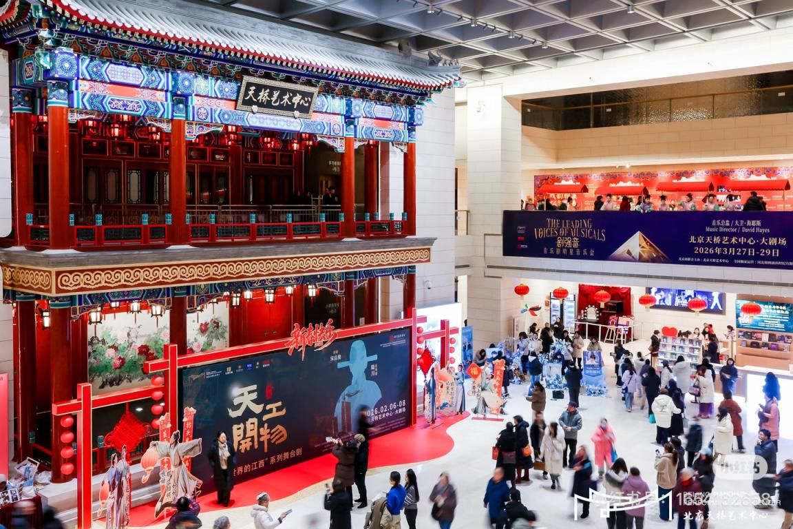 “当观众踏入大厅,与装置相遇的瞬间,就从普通公共空间进入了当前剧目专属的美学场域,体验到全方位包裹式的氛围感,提前完成观剧情绪的预热。”北京天桥艺术中心常务副总经理姜琼介绍,此前,天桥艺术中心在上演《剧院魅影》《伊丽莎白》等剧目时特设的装置广受好评,这种将观剧体验前置、让空间叙事与演出内核深度绑定的做法,已成为天桥的特色,“本次新春设计更呼应了艺术中心的文脉,与仿古戏楼相得益彰,让历史感与节日感碰撞出‘意料之外,情理之中’的惊喜。”