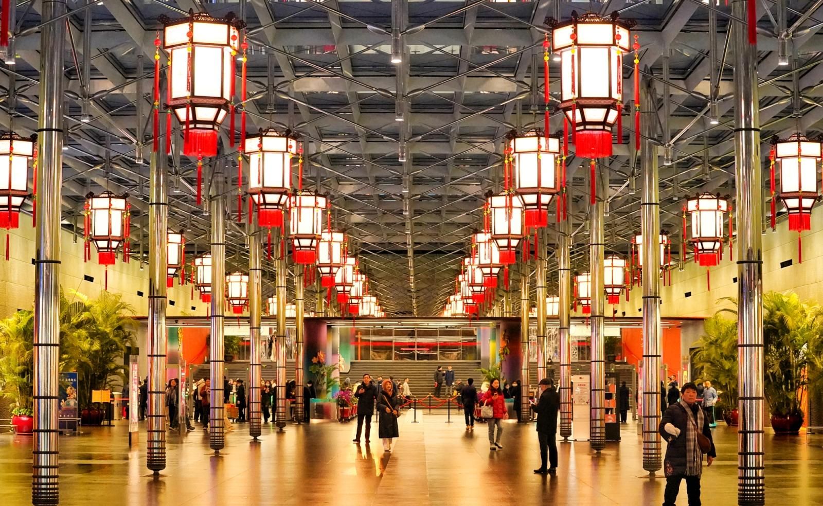 国家大剧院北水廊下悬挂精致宫灯。北京日报客户端记者 方非摄