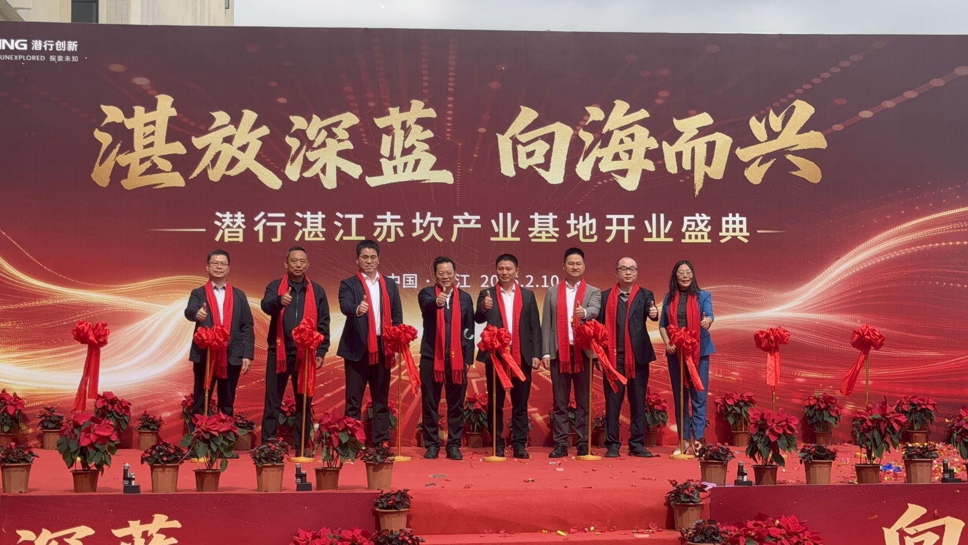 潮起南海,智领深蓝。2月10日,深圳潜行创新科技有限公司湛江赤坎产业基地正式开工,为湛江海洋智能装备产业版图再添核心力量。湛江市、赤坎区相关领导,企业代表及合作伙伴齐聚开业盛典,共同参与剪彩仪式,并走进潜行海洋科普馆,沉浸式考察水下智能装备技术成果与全场景应用方案。