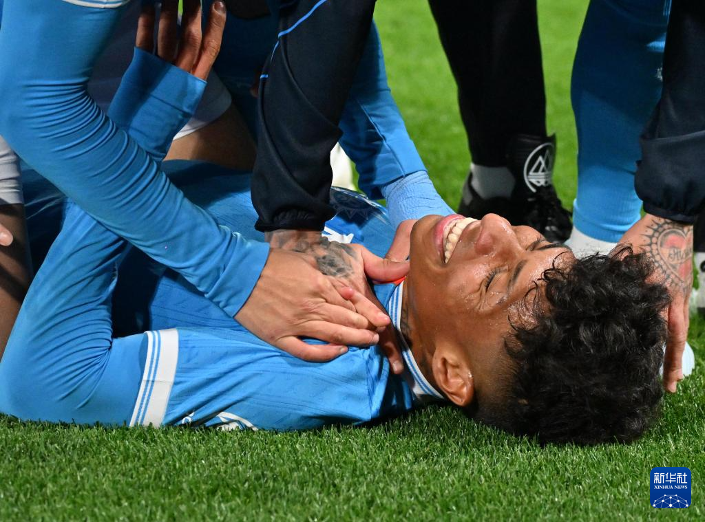 2月15日,那不勒斯队球员阿利松庆祝进球。