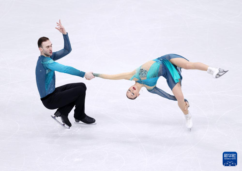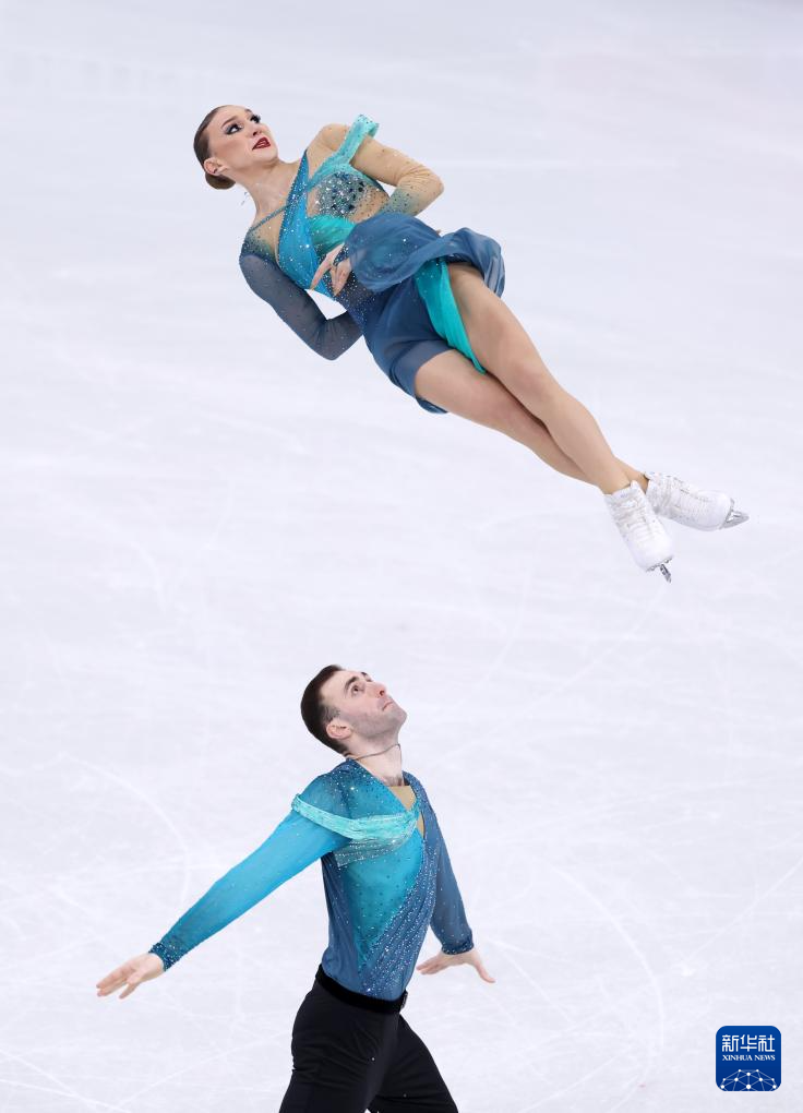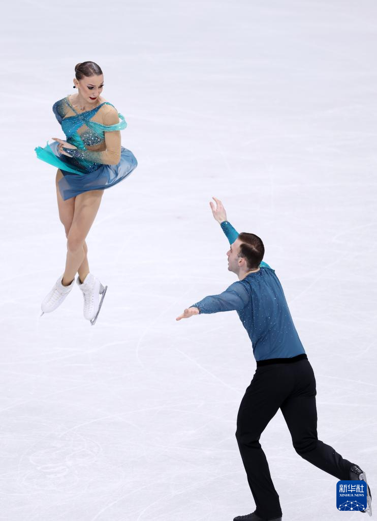 2月16日,格鲁吉亚组合梅特尔基娜/别鲁拉瓦(左)在双人滑自由滑比赛中。最终他们获得双人滑项目亚军。