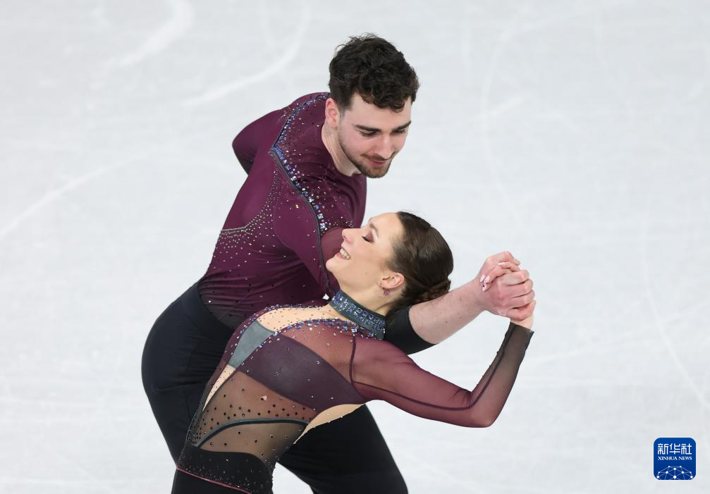 2月16日,加拿大组合斯特拉托-杜德克/德尚(左)在比赛中。