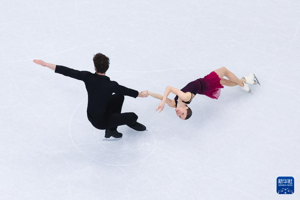 2月16日,美国组合埃莉·甘/奥谢(下)在比赛中。他们获得双人滑项目第九名。