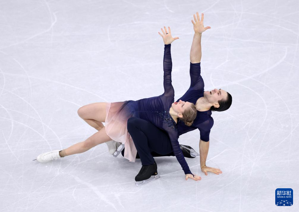 2月16日,德国组合哈泽(右)/沃洛丁在双人滑自由滑比赛中。最终他们获得双人滑项目季军。