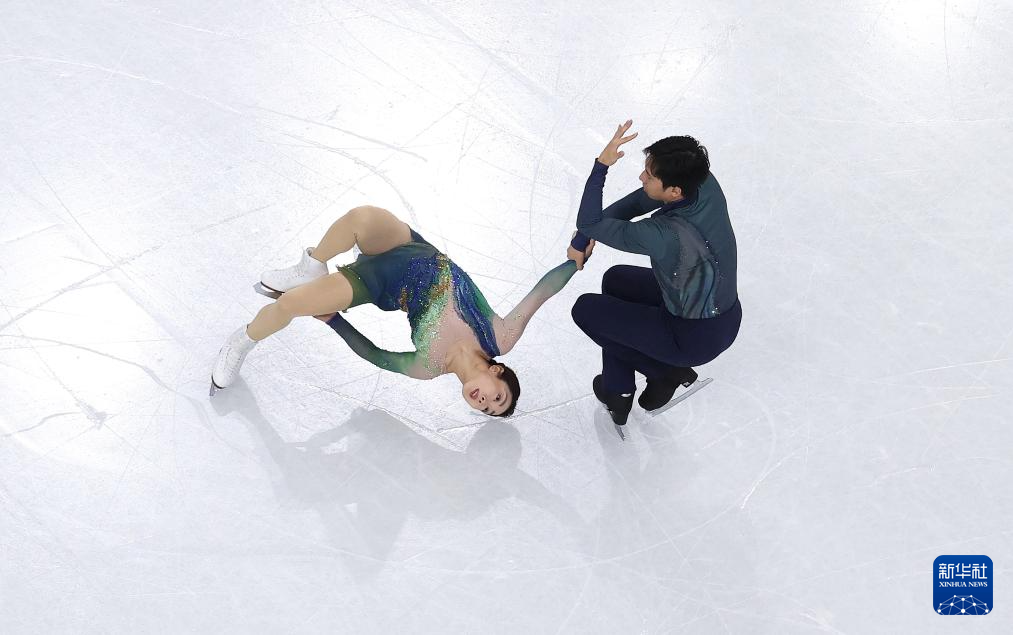 2月16日,德国组合哈泽(上)/沃洛丁在双人滑自由滑比赛中。最终他们获得双人滑项目季军。