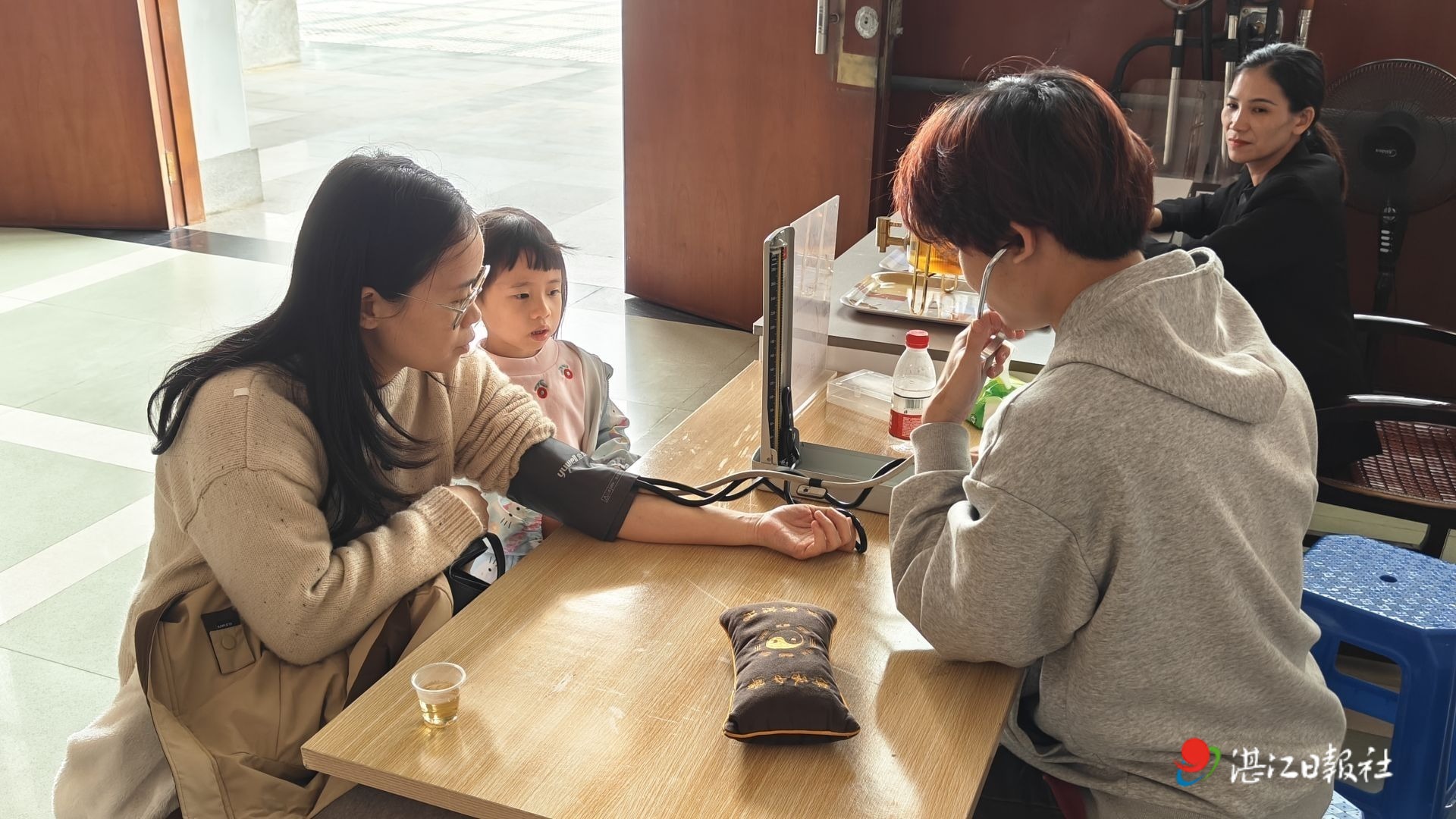 赤坎主展馆的非遗文创茶品鉴区,为到场的女同胞奉上清香醇厚的养生茶饮。一盏清茶入口,温润回甘,舒缓身心。馆里还特别安排了公益义诊服务,提供贴心的健康指导、用药咨询和养生科普,不少市民游客表示此项服务既实用又贴心。