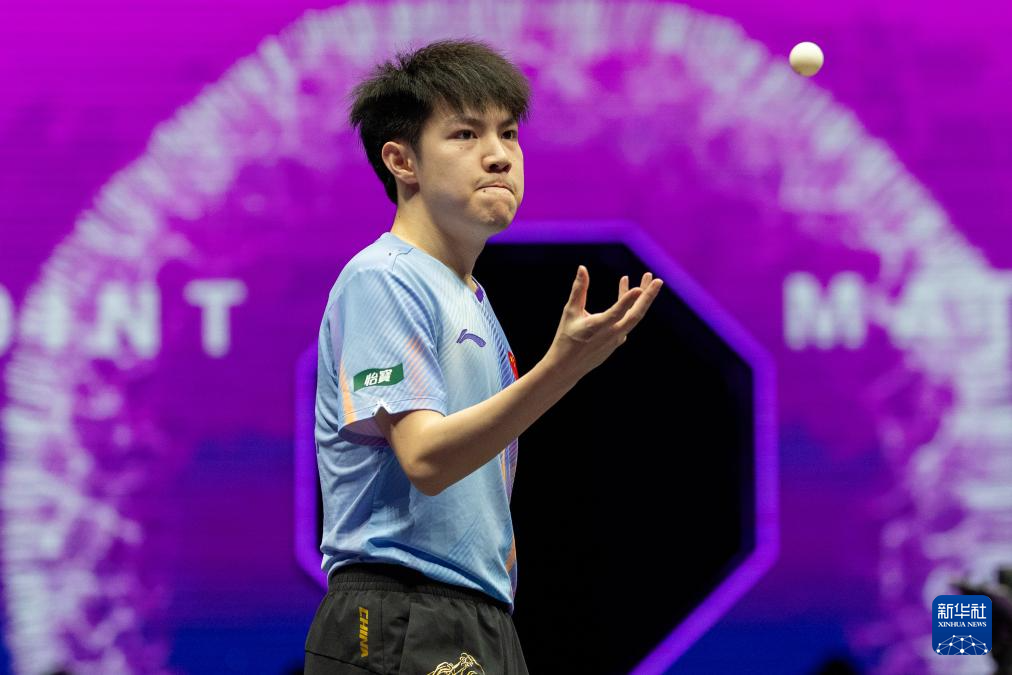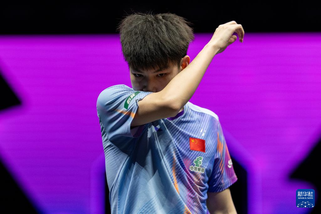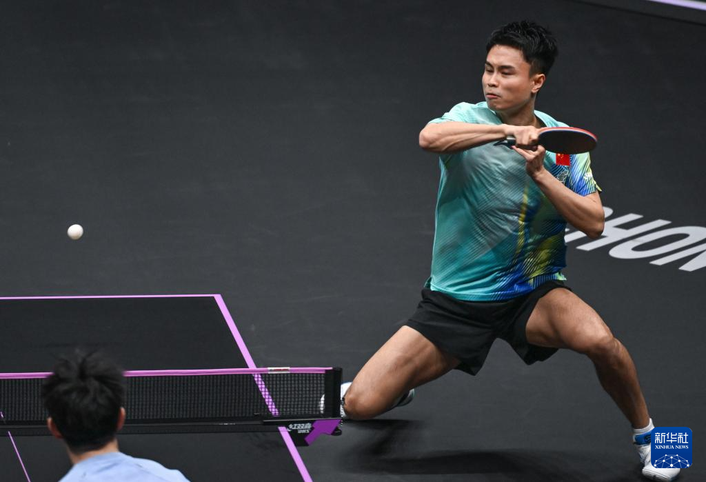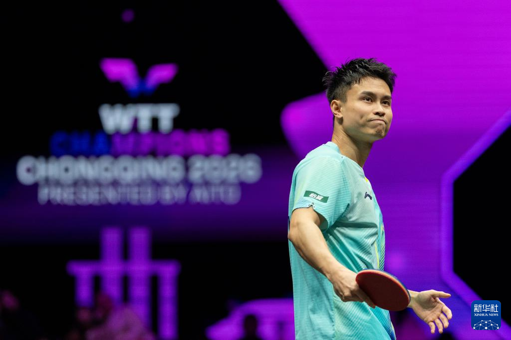 3月10日,在重庆进行的2026世界乒乓球职业大联盟(WTT)重庆冠军赛男子单打首轮比赛中,中国选手周启豪3比1战胜队友黄友政,晋级16强。