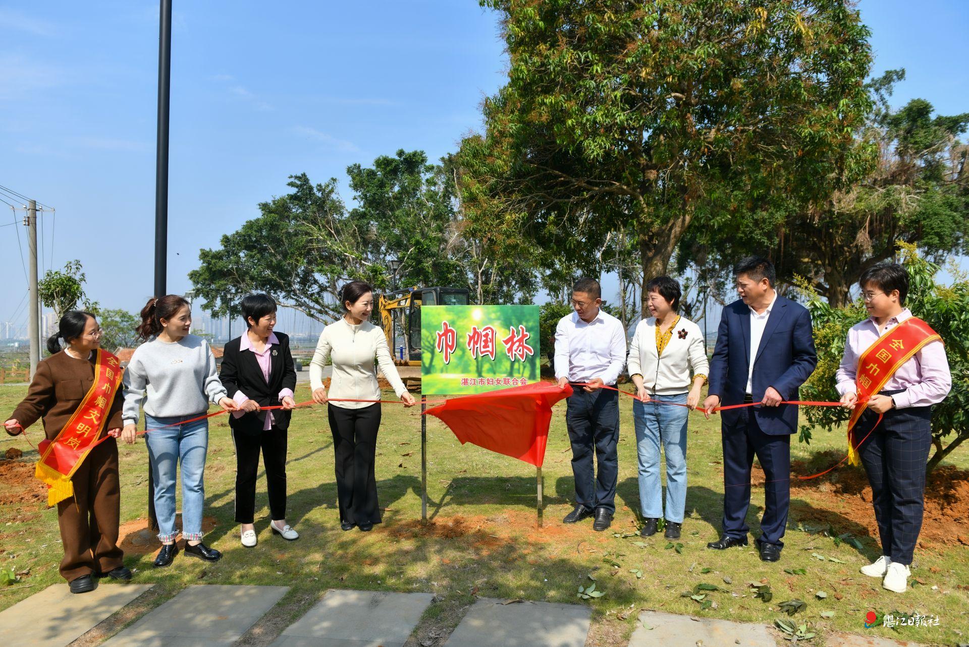 随后,市妇联领导与2025年度全国巾帼先进代表共同为“巾帼林”揭牌,红绸轻扬间,这片承载着巾帼担当与生态期盼的绿地正式亮相,成为调顺村口袋公园中一道别样的风景线,也为湛江“有喜事来种树”行动再添生动实践,以巾帼建功喜事,育生态发展的新绿。