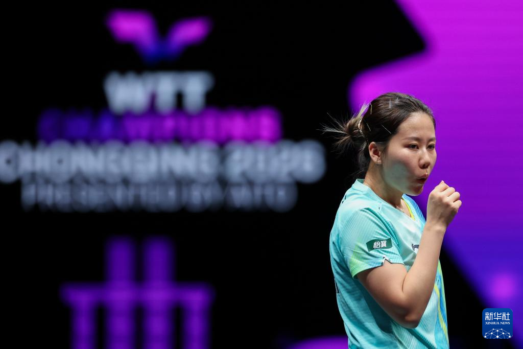 3月13日,在重庆进行的世界乒乓球职业大联盟(WTT)重庆冠军赛女子单打八分之一决赛中,中国选手石洵瑶3比1战胜队友陈幸同,晋级八强。