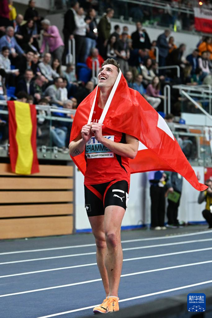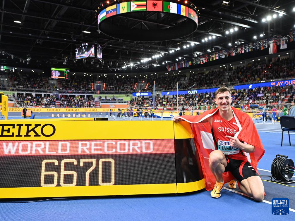 当地时间3月21日,2026年世界田联室内锦标赛男子七项全能1000米比赛在波兰托伦举行。最终,瑞士选手西蒙·埃哈默以6670分的总分获得男子七项全能冠军,并打破世界纪录。