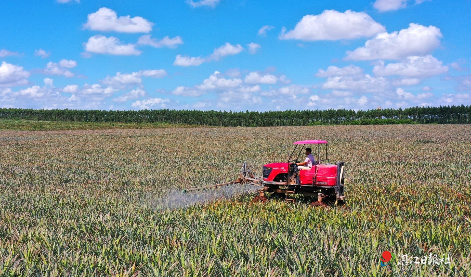 近日,湛江农垦友好农场首批280亩金钻凤梨基地迎来丰收。连片的凤梨个头饱满,错落有致地“镶嵌”在田间,工人们穿梭垄间,熟练开展采摘、分拣、装箱作业,处处洋溢着丰收的喜悦。