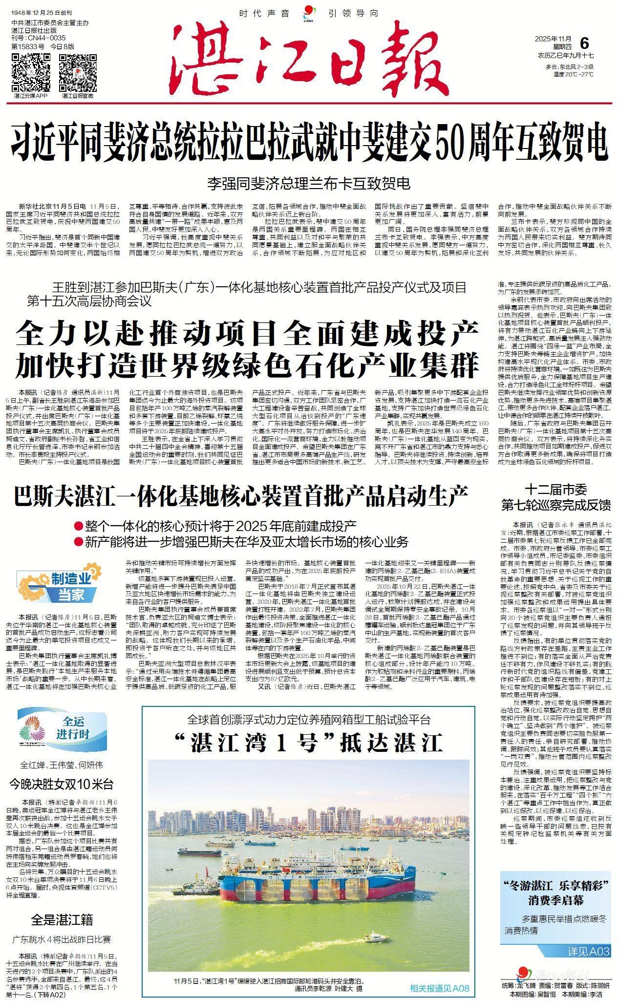 从2018年中德携手签署合作备忘录,到2026年3月26日全面投产,近八年时光,巴斯夫在湛江的一体化基地从蓝图构想变为世界级化工旗舰,每一个关键节点都镌刻着奋进的印记,每一步坚实步伐都见证着湛江与巴斯夫的双向奔赴、共启新篇。