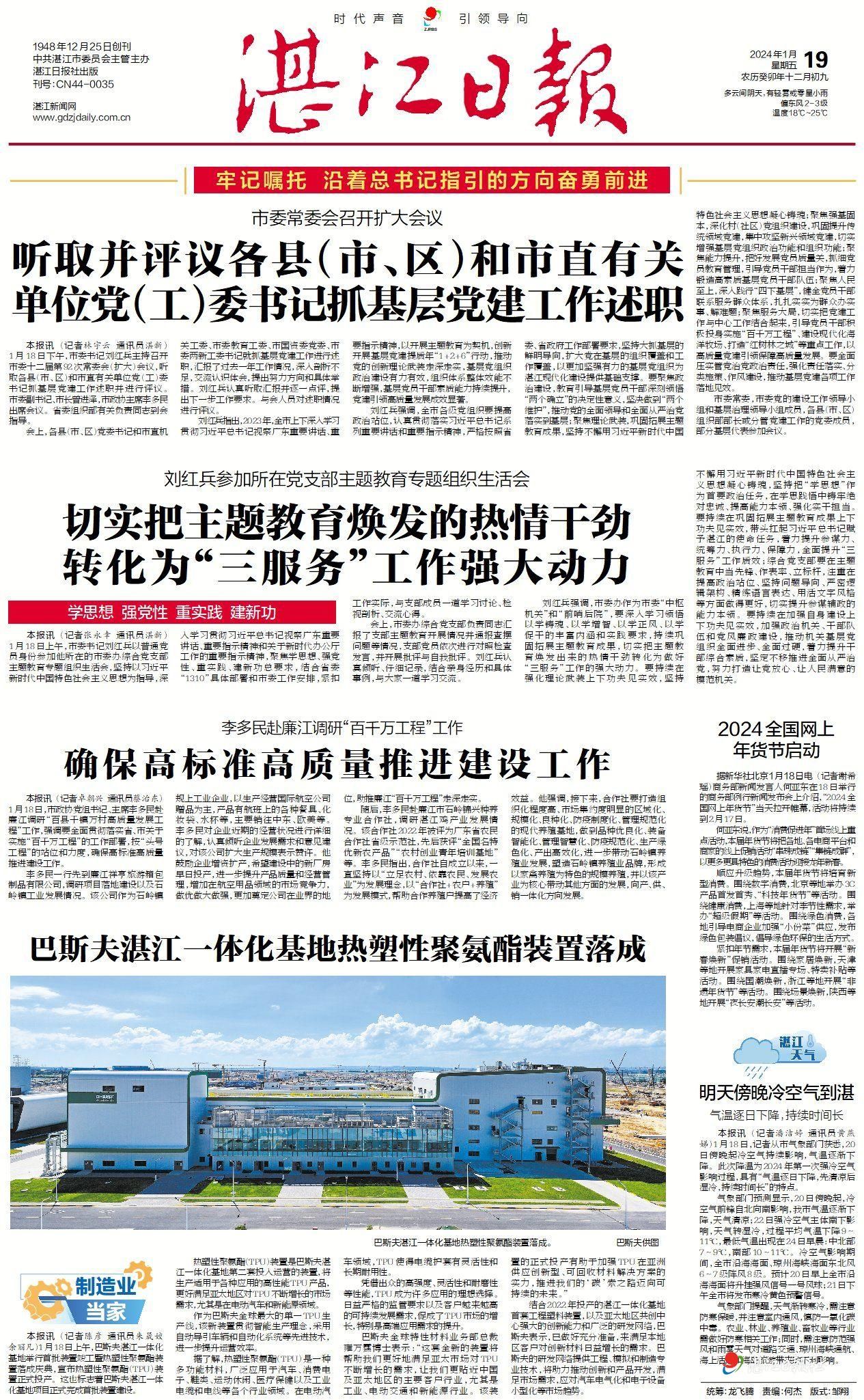 ●2024年1月18日,第二套装置即热塑性聚氨酯装置正式投产,标志着首批装置正式竣工