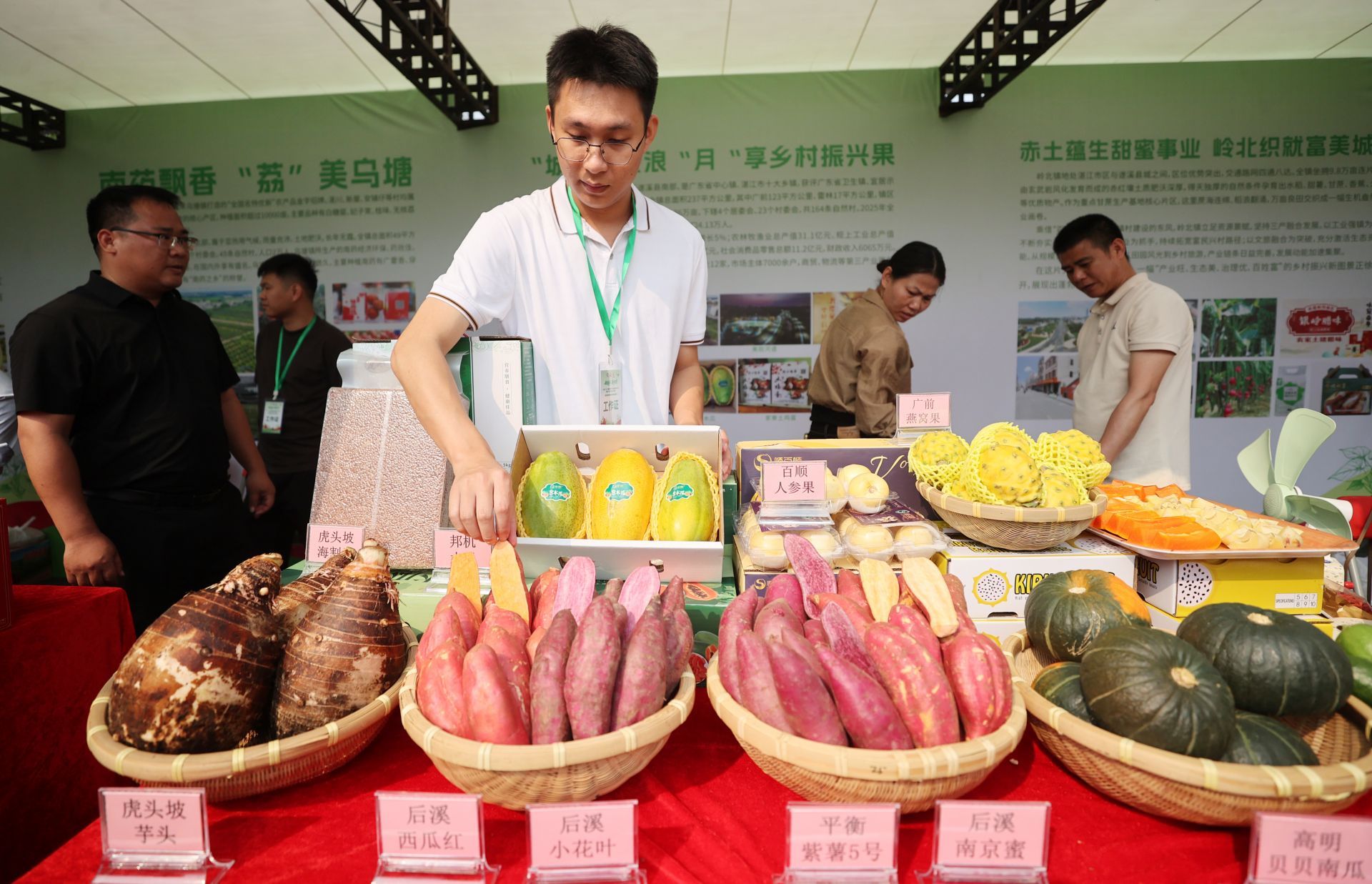 展示区内,甘薯全产业链展位、食品加工产业展位、文旅产业展位与特色镇街集市有机联动,汇聚全县优质农产品资源,从种苗培育、新鲜甘薯采收,到甘薯深加工美食、文创周边产品,实现全产业链成果一站式集中展示,全面展现遂溪甘薯产业的多元发展格局。文化周发车仪式上,现场大屏幕实时连线洋青镇、河头镇等甘薯种植基地,满载新鲜甘薯的货车有序启程,奔赴全国各地,见证遂溪甘薯行销天下的重要时刻。