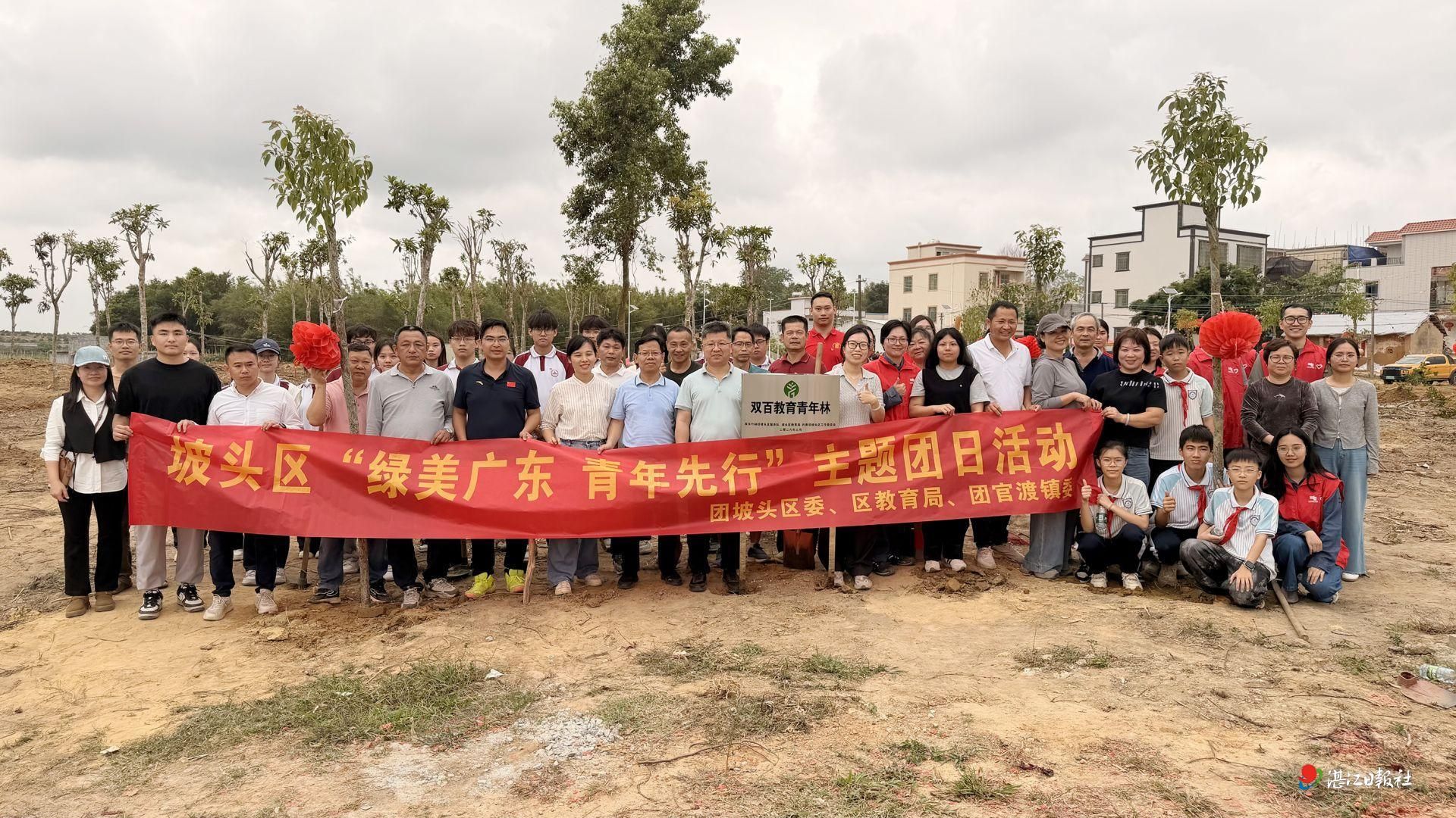 3月28日,由坡头区教育局、共青团坡头区委、双百行动驻坡头区服务队联合主办,湛江科技学院等单位共同参与的“绿美广东 青年先行”主题植树活动,在坡头区官渡镇黄桐村委会关垌村开展。