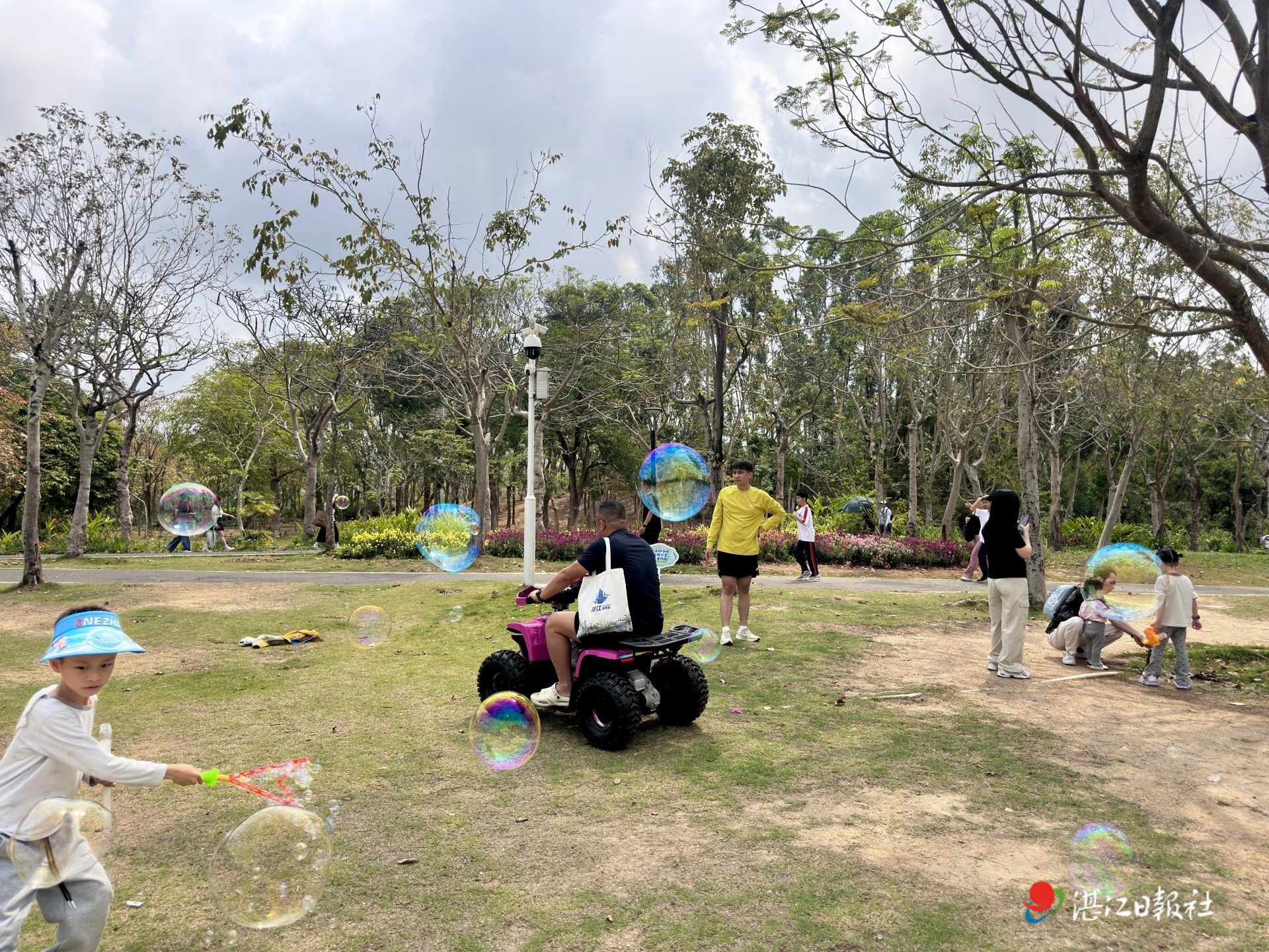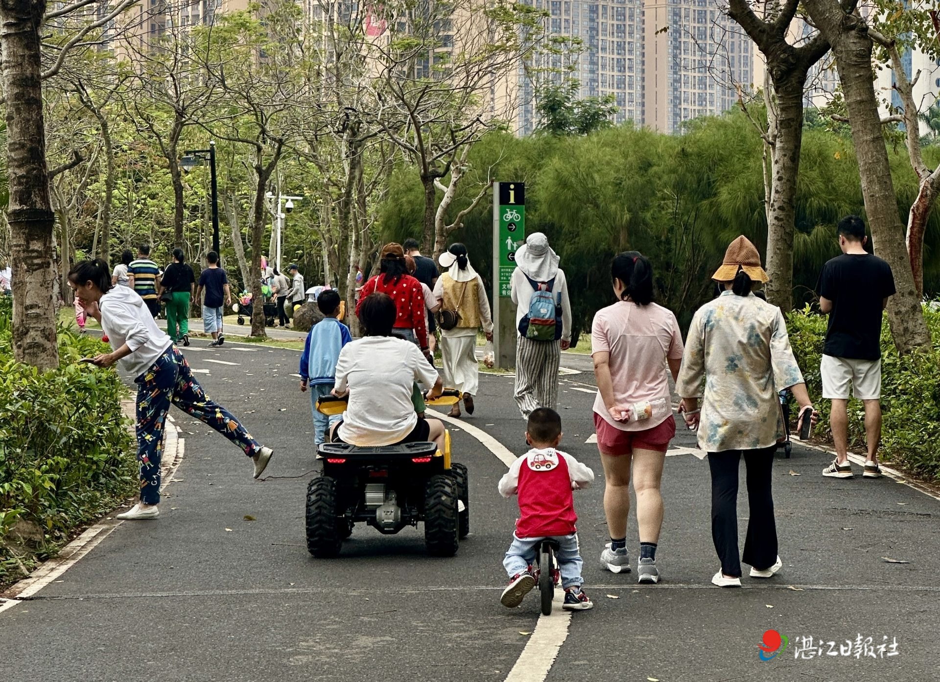 3月29日上午,记者在湛江南国热带花园绿道发现,一批标注“扫码骑行”的小型游乐四轮车在绿道内行驶。该绿道原本是市民步行、骑行的公共休闲区域,路面清晰标注步行及非机动车通行标识,却未规划游乐车通行区域。