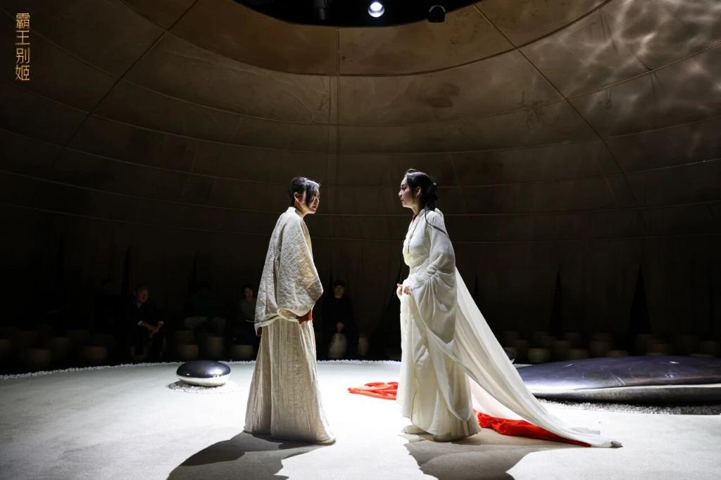 作为《我们的荆轲》后北京人艺排演的第二部莫言话剧作品,《霸王别姬》没有遵循传统线性叙事,而是以虞姬、吕雉两个女性角色的对话开始,穿插她们与项羽的回忆和各自的现实。
