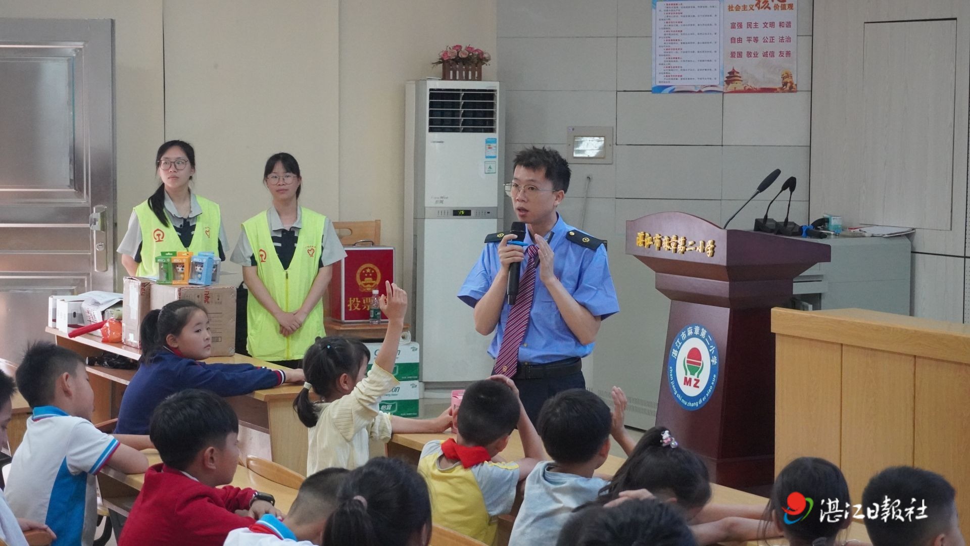 课堂上,青年志愿者结合广湛高铁运营实际,重点讲解铁路防护栏作用、高压接触网安全隐患、禁止在铁路沿线玩耍打闹及向列车抛掷物品等安全常识,并通过动漫视频直观展示翻越护栏、在铁路沿线放风筝等危险行为的严重后果,引导学生树立铁路安全无小事的意识。