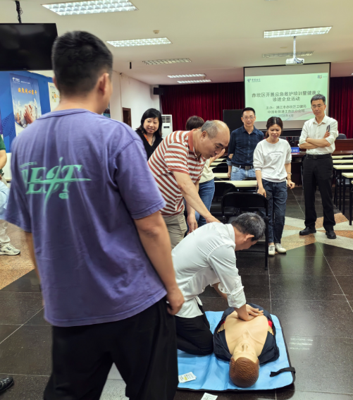 活动现场同步开展应急救护知识科普与实操教学,专业医护人员围绕心肺复苏、海姆立克急救法等实用技能进行讲解演示,手把手指导职工规范操作,有效提升大家的应急自救互救能力,为日常工作与生活筑牢健康安全屏障。
