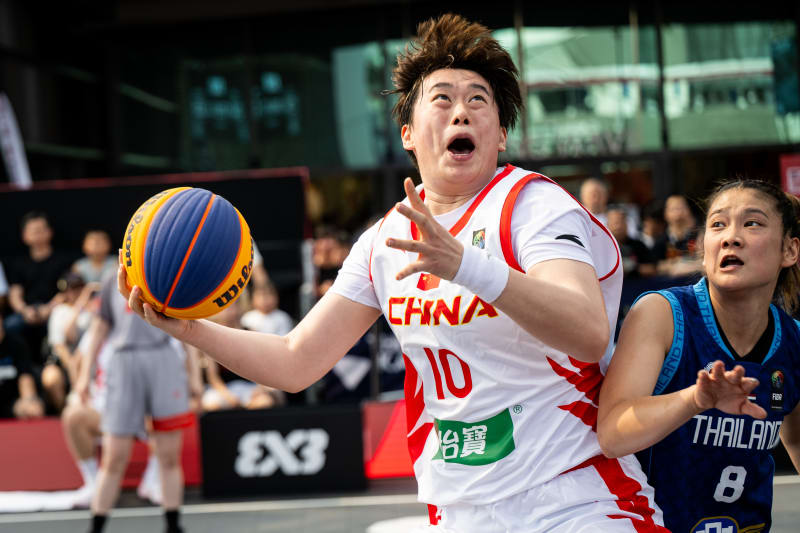中国队球员张芷婷(左)在与泰国队的比赛中。图片来自国际篮联三人篮球官网