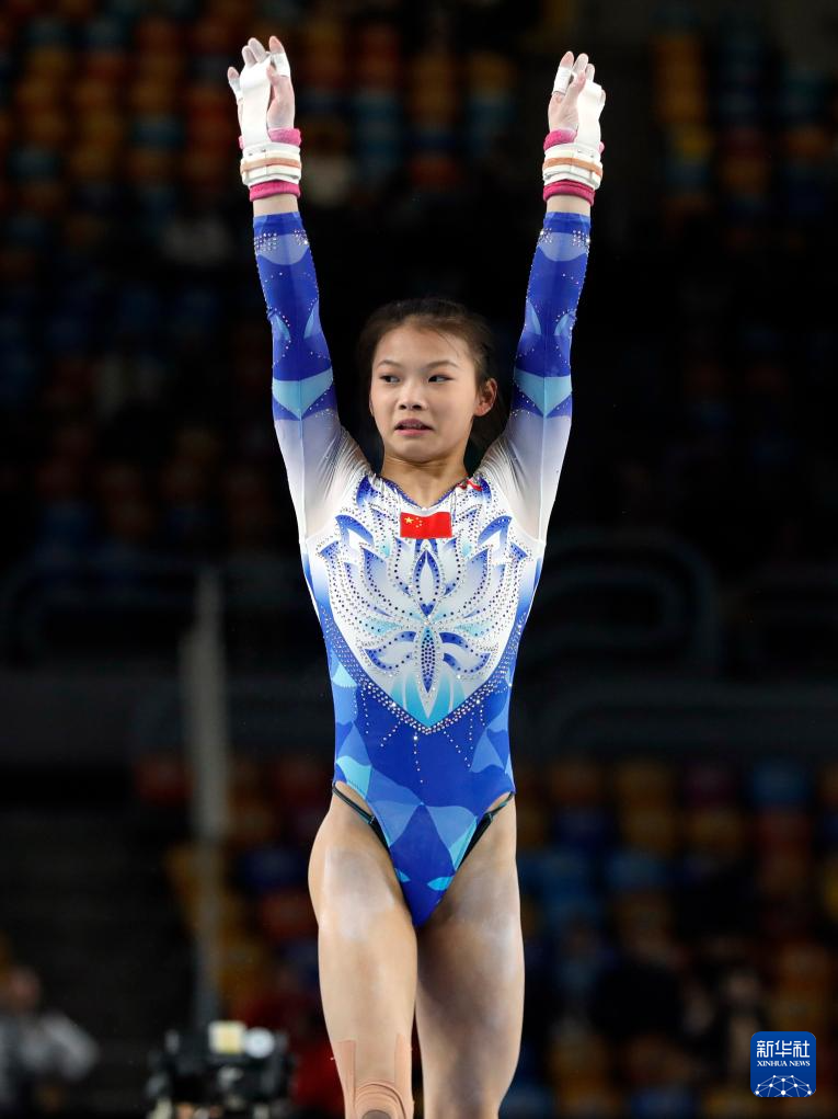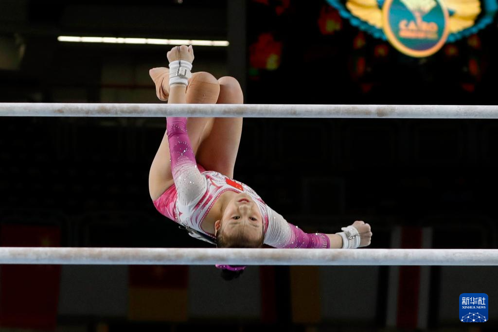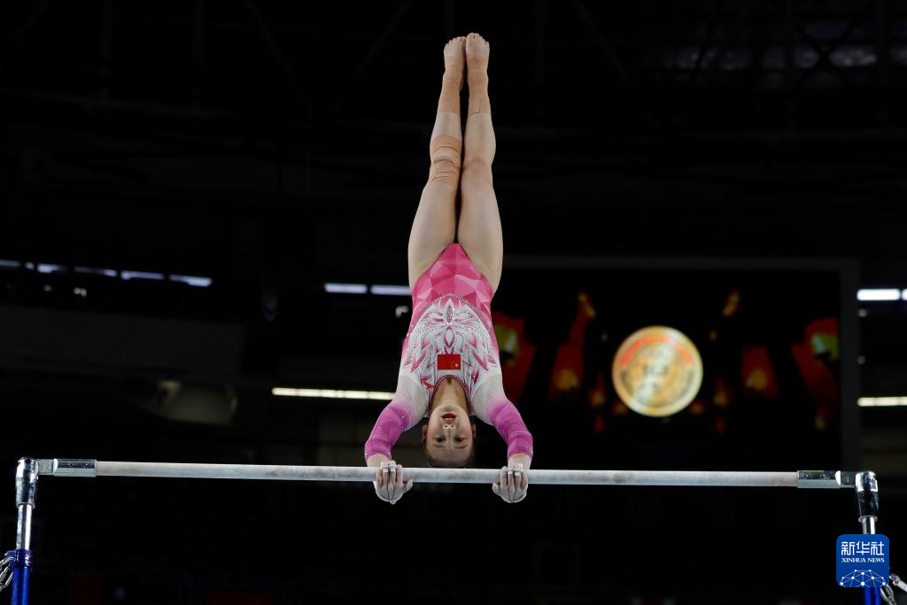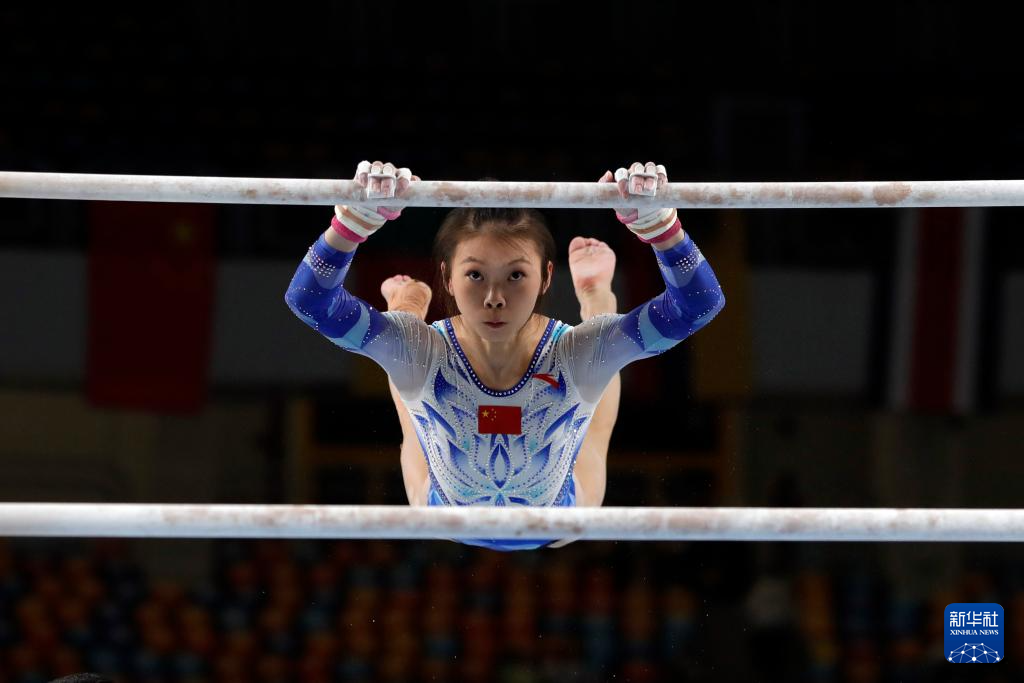 4月3日,中国选手蒋淑婷在高低杠项目资格赛中。她位列第三名,晋级决赛。