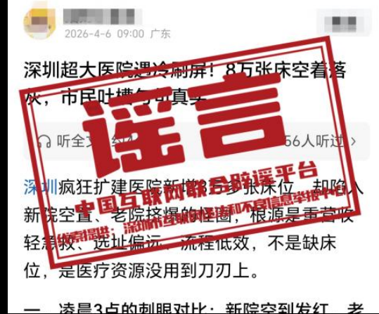 辟 谣 网传“深圳超大医院遇冷、八万床位空置”不实