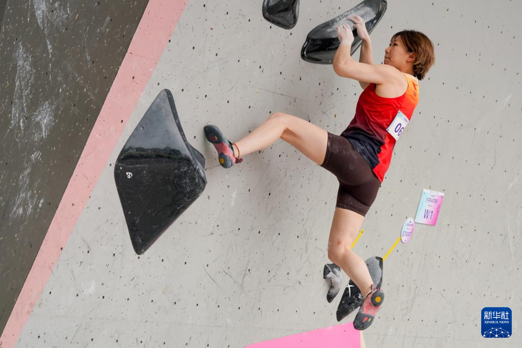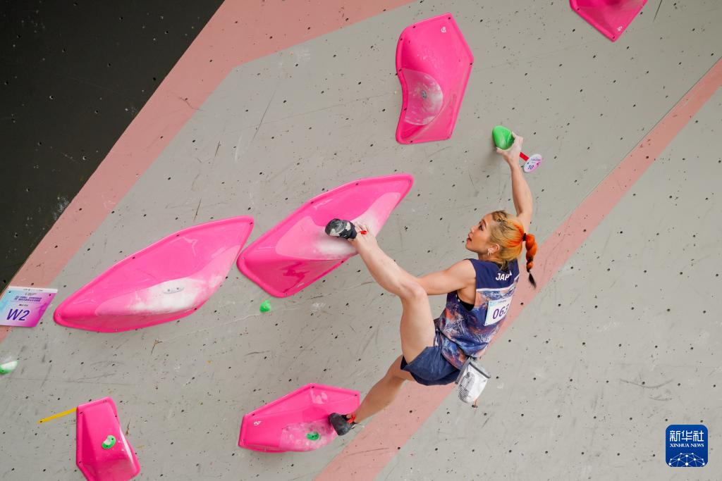 4月8日,日本选手野中生萌在女子攀石预赛中。