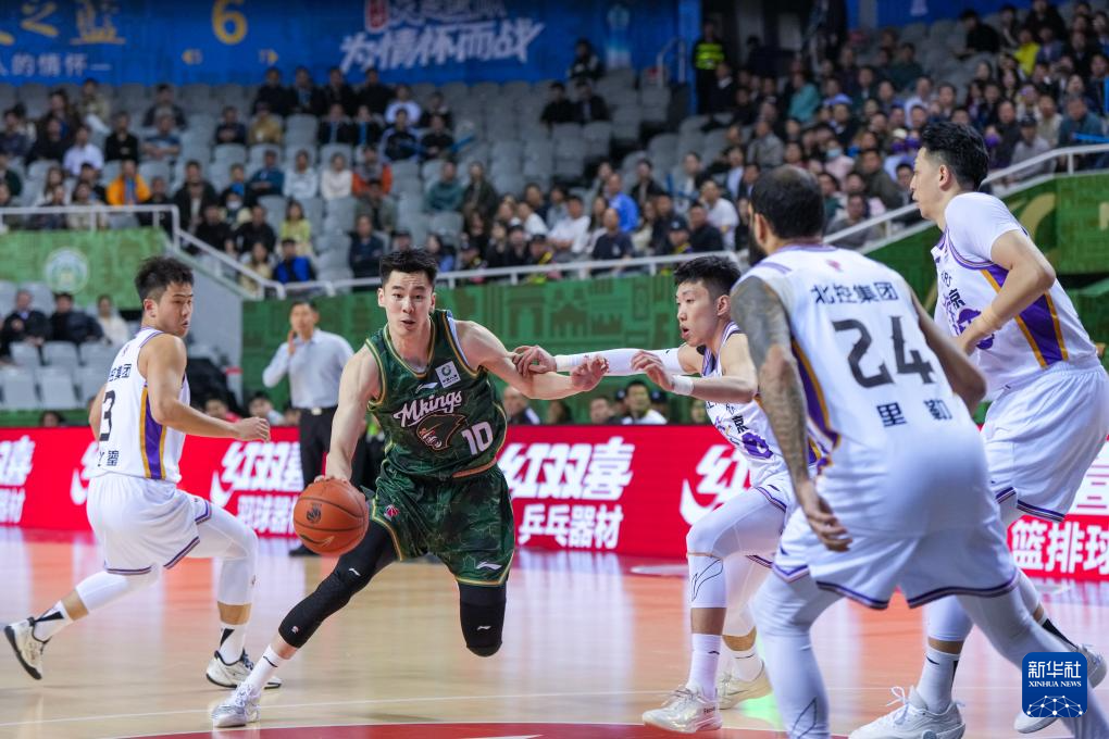 4月8日,南京天之蓝队球员郭昊文(左二)在比赛中突破。