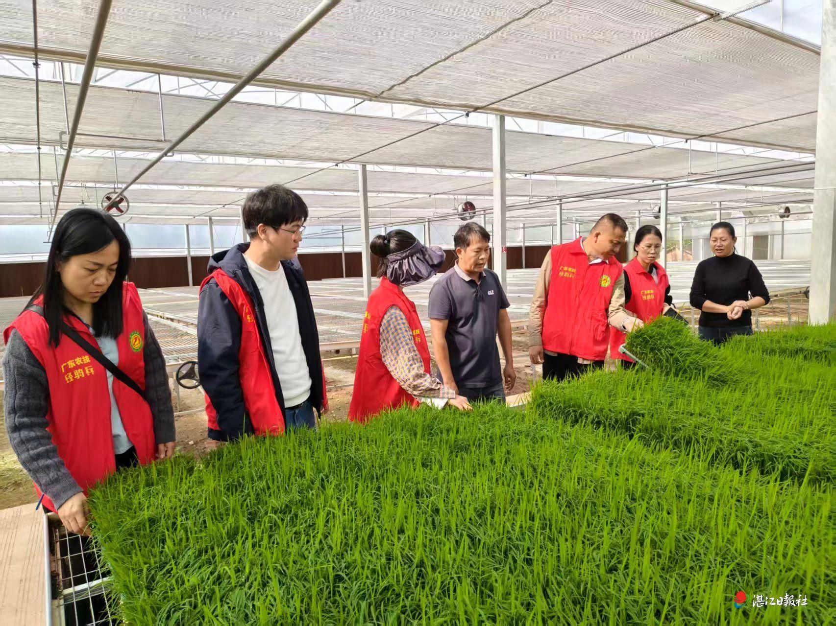 育秧一线科技赋能,夯实春耕基础。农技队伍深入廉江市廉青种植有限公司育秧中心,细致察看秧苗长势、苗床墒情、棚内温湿度,围绕良种选用、精准水肥、温湿度调控、通风炼苗、绿色防控等环节强化指导,同时核查调试墒情监测点设备,以数字化手段为春耕备耕提供科学支撑。