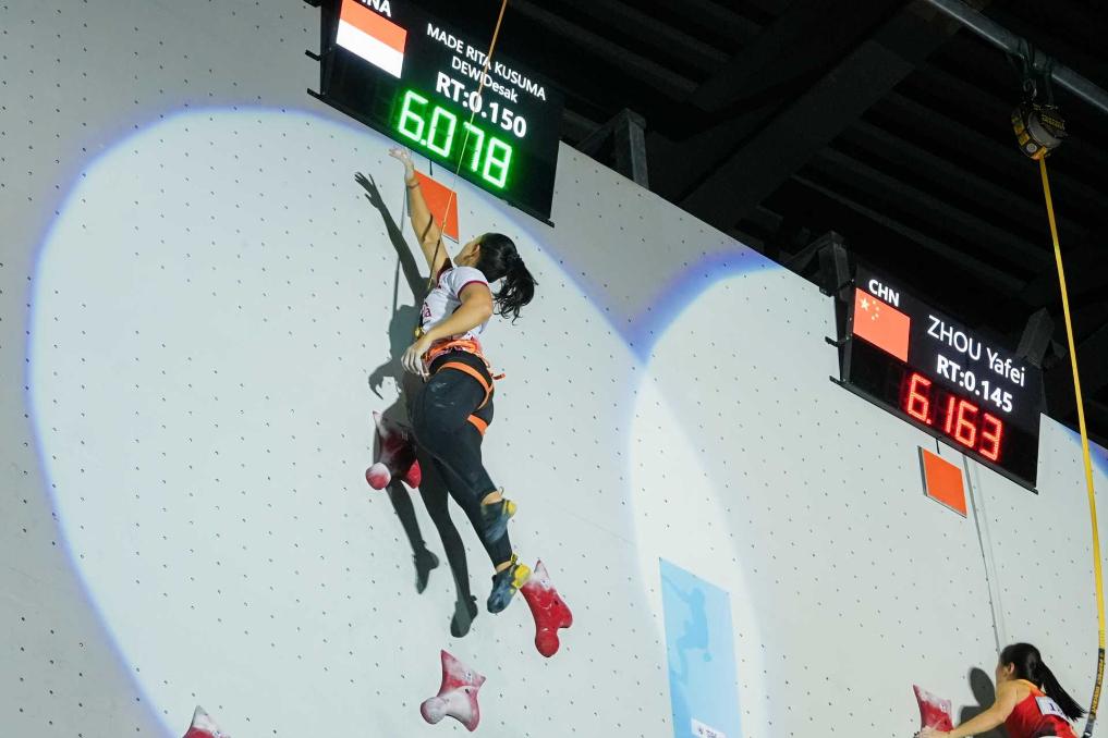 中国选手周娅菲、覃于妹分获第二、三名。周娅菲凭此获得了中国队剩下的一个名古屋亚运会女子速度攀岩资格。