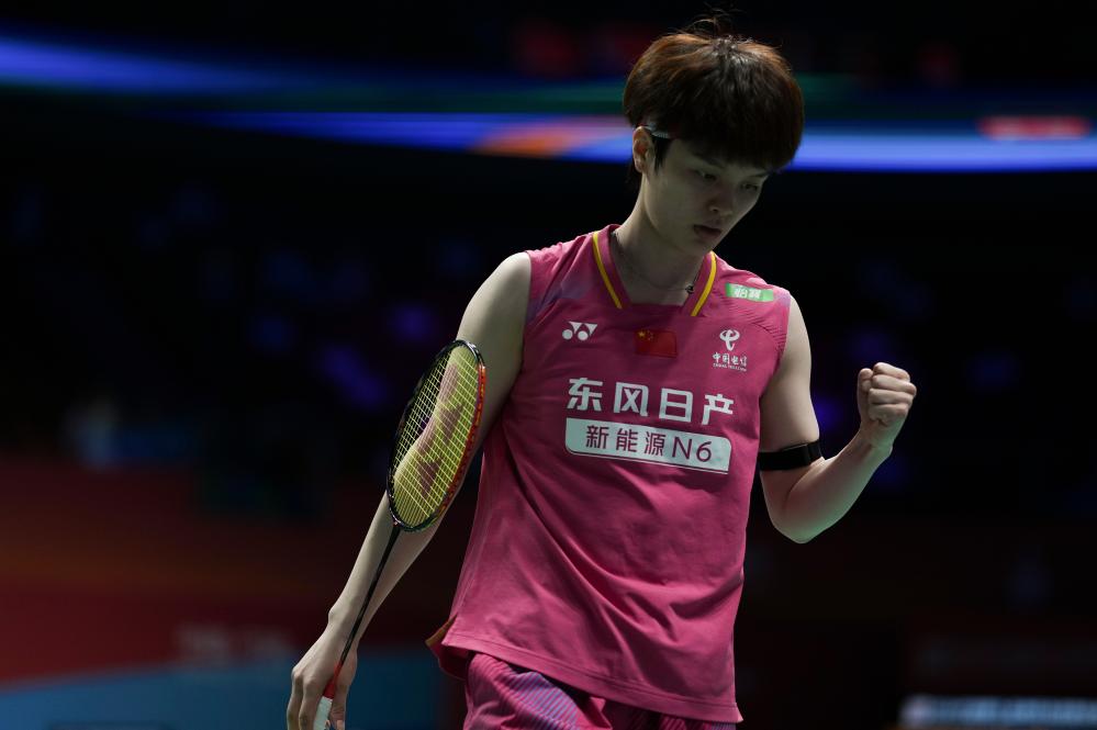 面对辛杜,二号种子王祉怡以21:18艰难拿下首局后,在第二局完全掌控局势,以21:8锁定八强门票。
