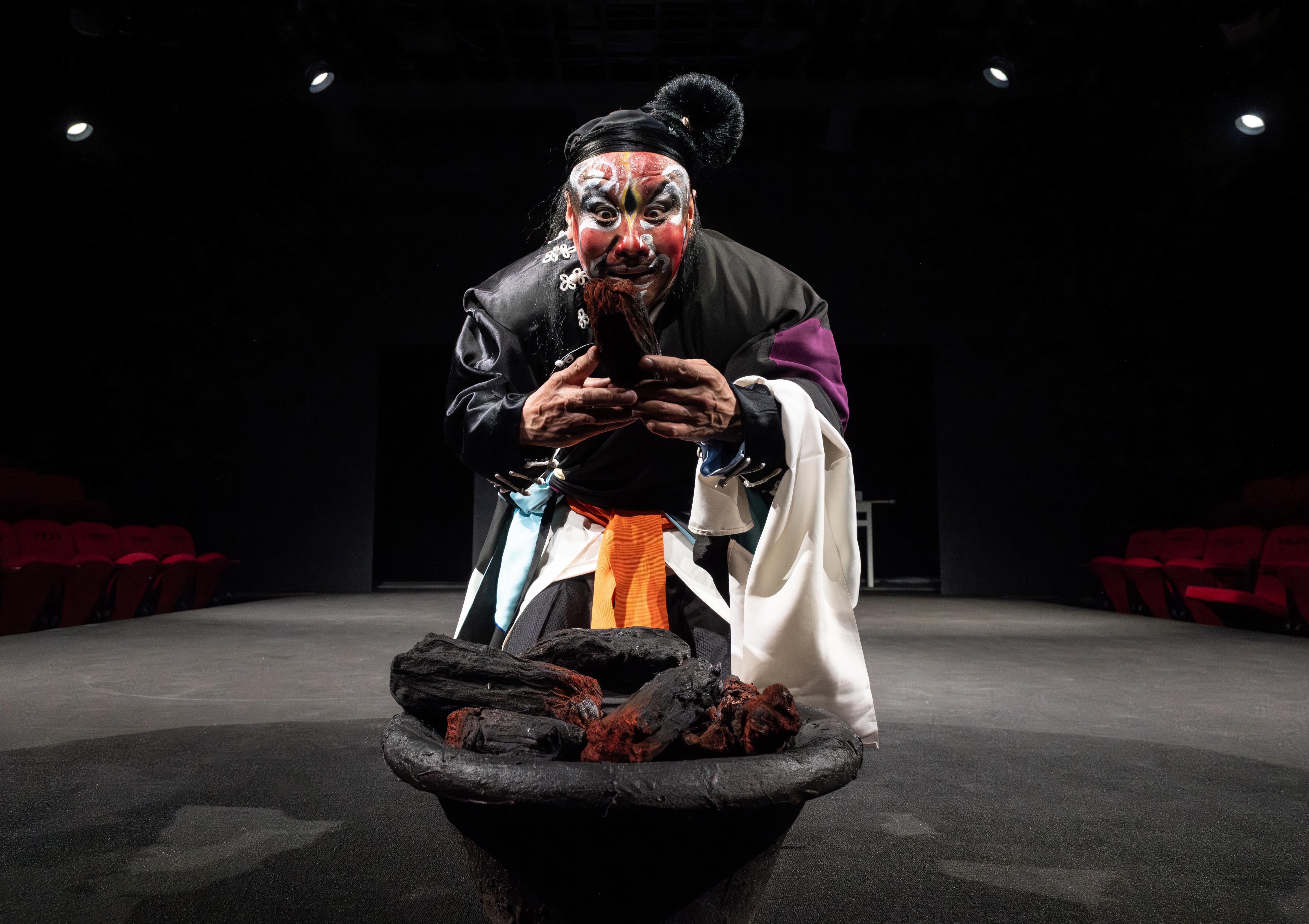 在三面观众的小剧场空间里,京剧演员刘大可、郑子茹、刘铮等不戴麦克风,全凭肉嗓演绎京剧唱腔。观众得以清晰看见他们细微的表情与滚落的汗水——豫让得知智伯死讯时的愤怒,与妻子诀别时的悲痛,漆身吞炭时的挣扎与义无反顾,直至刺袍自刎时的释然,层层递进,淋漓尽致。而吞炭吐火等传统绝技的亮相,更是令观众连连叫好。
