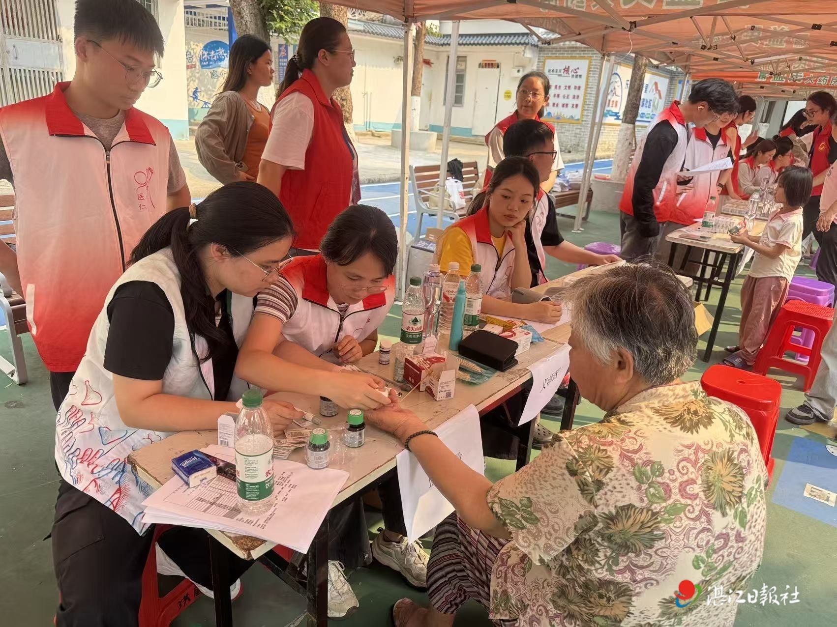 4月12日,霞山区爱国街道洪屋社区家长学校在该社区爱国苑小公园举办“医心护健康,海洋进社区”知识科普活动。活动紧扣世界卫生日、全民国家安全教育日双节点,联动广东医科大学、广东海洋大学30名研究生志愿者,为辖区60余名老幼居民送上集健康义诊、安全科普、海洋趣味互动于一体的便民服务。
