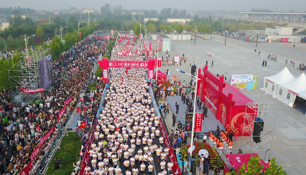 首届雄安马拉松由容城县政府发起举办,雄安新区管委会作为指导单位,在2017年9月24日鸣枪起跑,赛事规模3000人,其中半程马拉松1000人、健康跑2000人。“为规划好赛道,我们走遍了当时新区所有可通行的道路,摸清了周边村落的每一条小径,反复打磨了多版方案。”翁萍萍说。