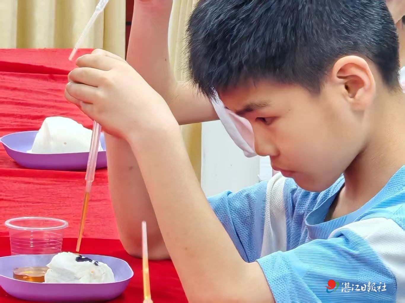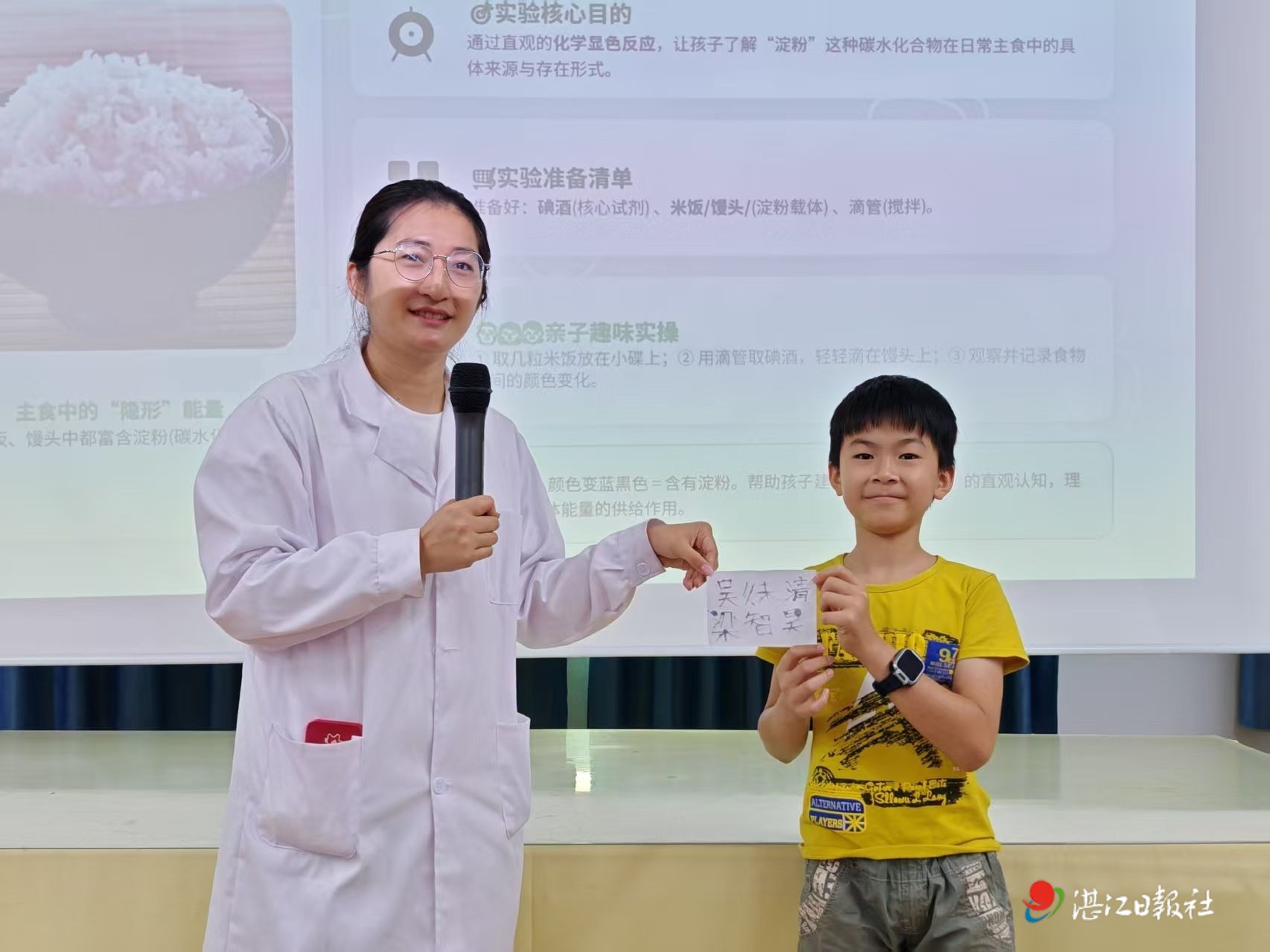随后,活动通过“蚝油稠度大探秘”和“简易淀粉鉴别实验”两个实验,引导孩子们在动手做实验中直观了解增稠剂的作用和主食中淀粉(碳水化合物)的存在,实现“做中学,学中悟”。