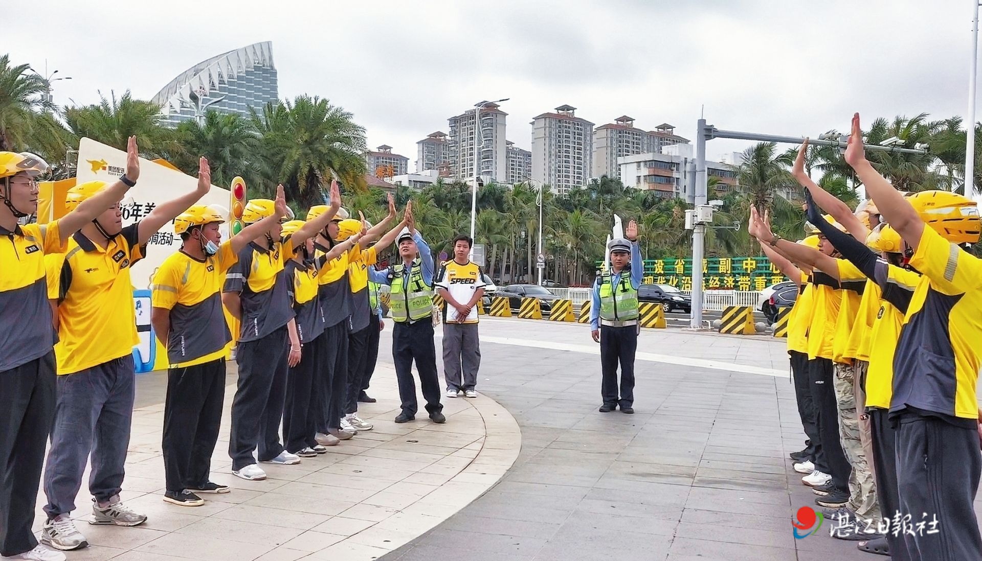 4月17日,湛江市公安交管部门联合美团平台在赤坎区丽悦路口举办“美团不闯红灯·安全声音邮筒活动——湛江场”联合行动。活动以“早点走 靠右行 慢慢走”为主题,依托交警“马路课堂”开展沉浸式宣传教育与路面文明劝导。