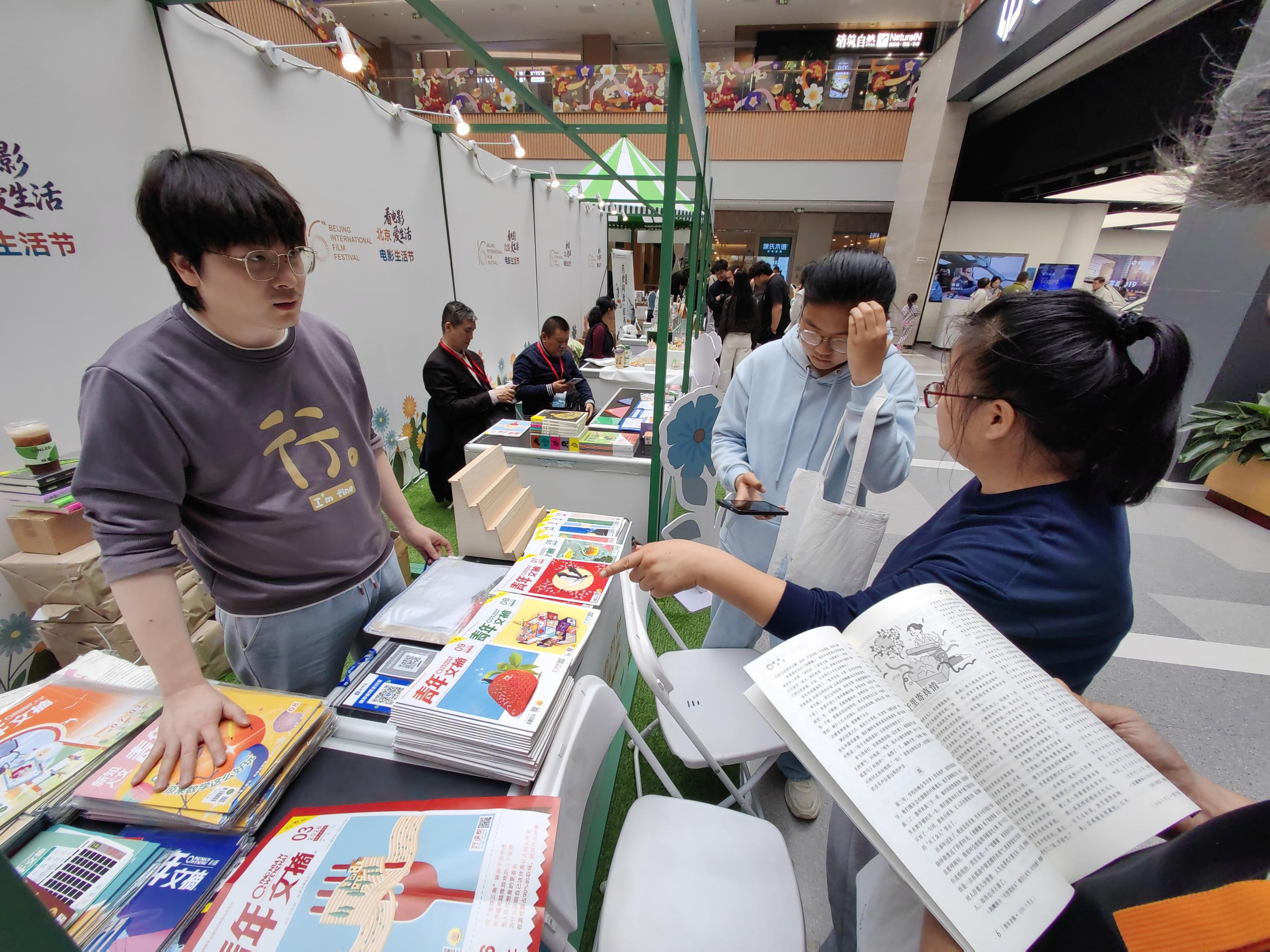 在六工汇购物中心一层,电影书籍、主题文创、图书交换等内容精彩纷呈。市民不仅淘到珍贵的电影类旧书和期刊,还纷纷参与图书交换活动,让闲置书籍流动起来。现场还设有特色非遗互动区,将传统阅读与非遗技艺有机结合,打造沉浸式文化体验空间。