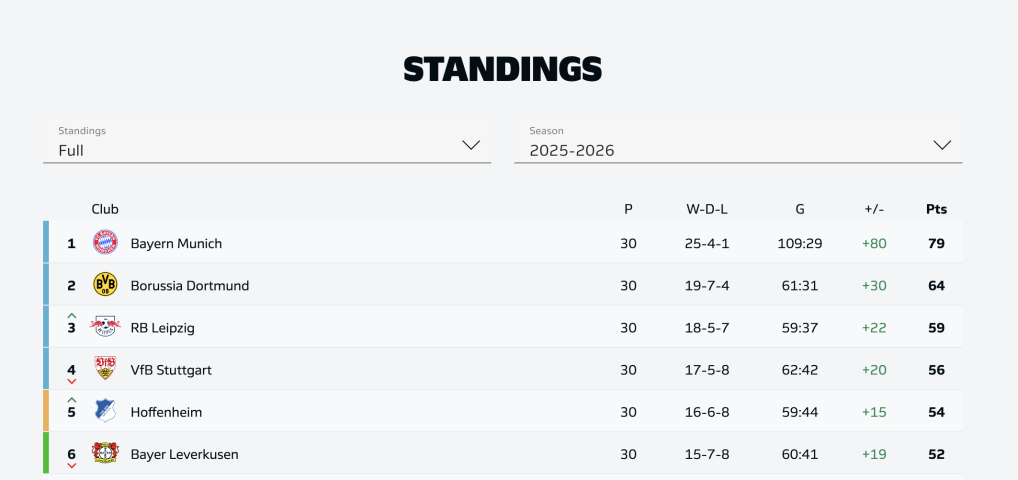 德甲积分榜