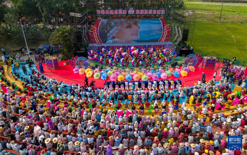 4月19日在海南省琼海市会山镇拍摄的“三月三”活动现场(无人机照片)。当日是农历三月初三,不少地方举行丰富多彩的民俗活动,欢度“三月三”传统节日。新华社发(蒙钟德 摄)