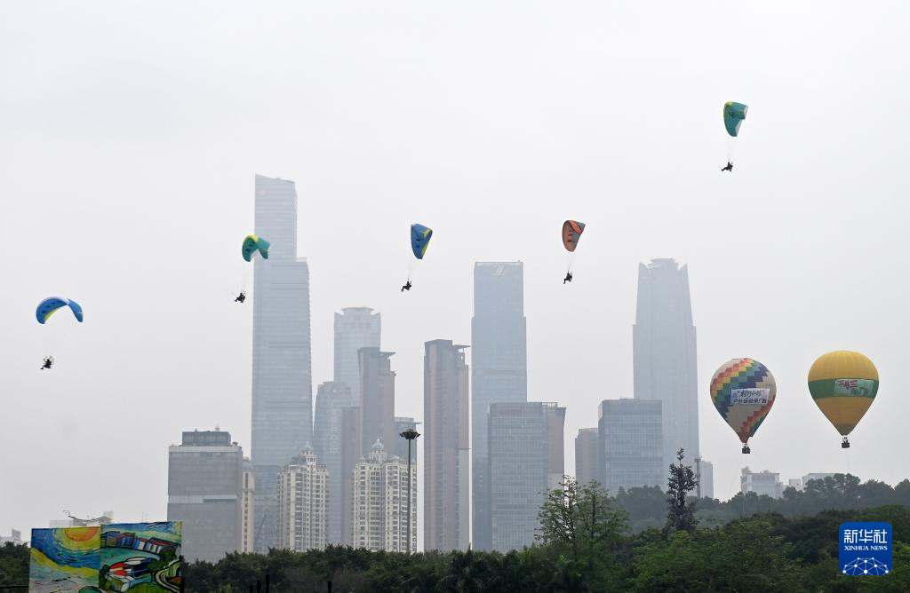 4月19日,2026年“广西三月三·八桂嘉年华”文化旅游品牌活动继续在南宁市民歌湖举行,动力伞编队在民歌湖上空表演。当日是农历三月初三,不少地方举行丰富多彩的民俗活动,欢度“三月三”传统节日。新华社记者 陆波岸 摄