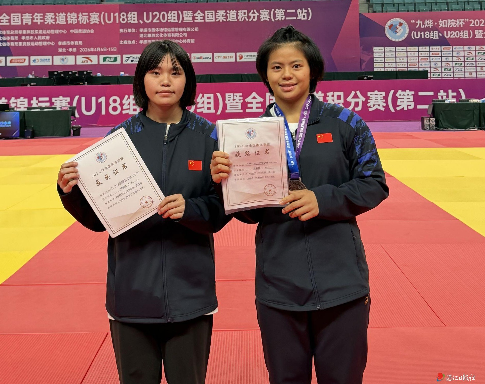 近日,2026年全国青年柔道锦标赛在湖北孝感举行。其中,由湛江市体育学校培养、输送的运动员张秋婷,为广东队获得女子70公斤级项目铜牌。