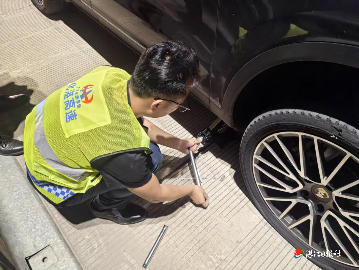 帮助司机快速更换轮胎。 通讯员提供