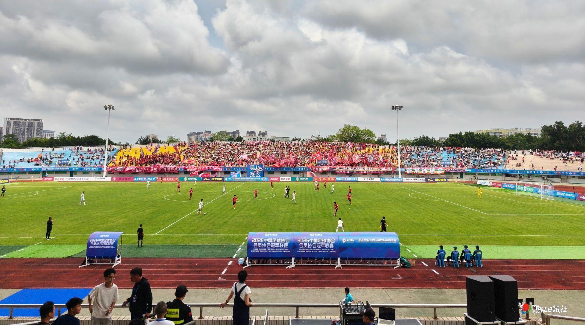 4月21日下午,2026中国足球协会会员协会冠军联赛(中冠联赛)吴川赛区在江心岛体育场揭幕。东道主广东吴川青年队迎战广州花都蜀地红队,双方激战90分钟,最终以1:1握手言和。