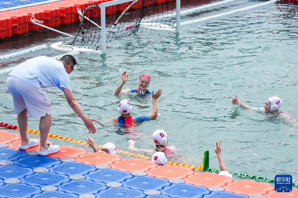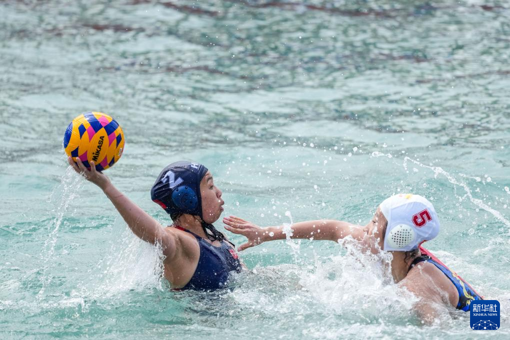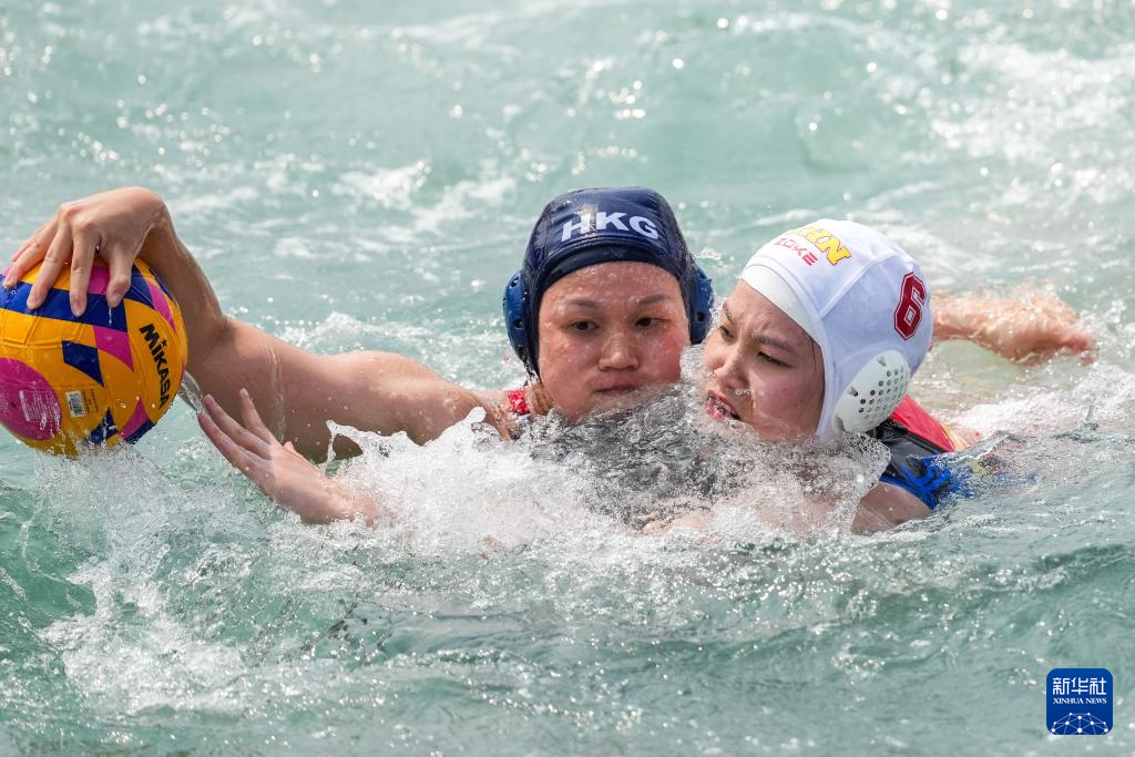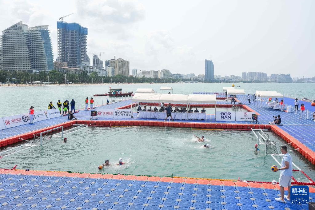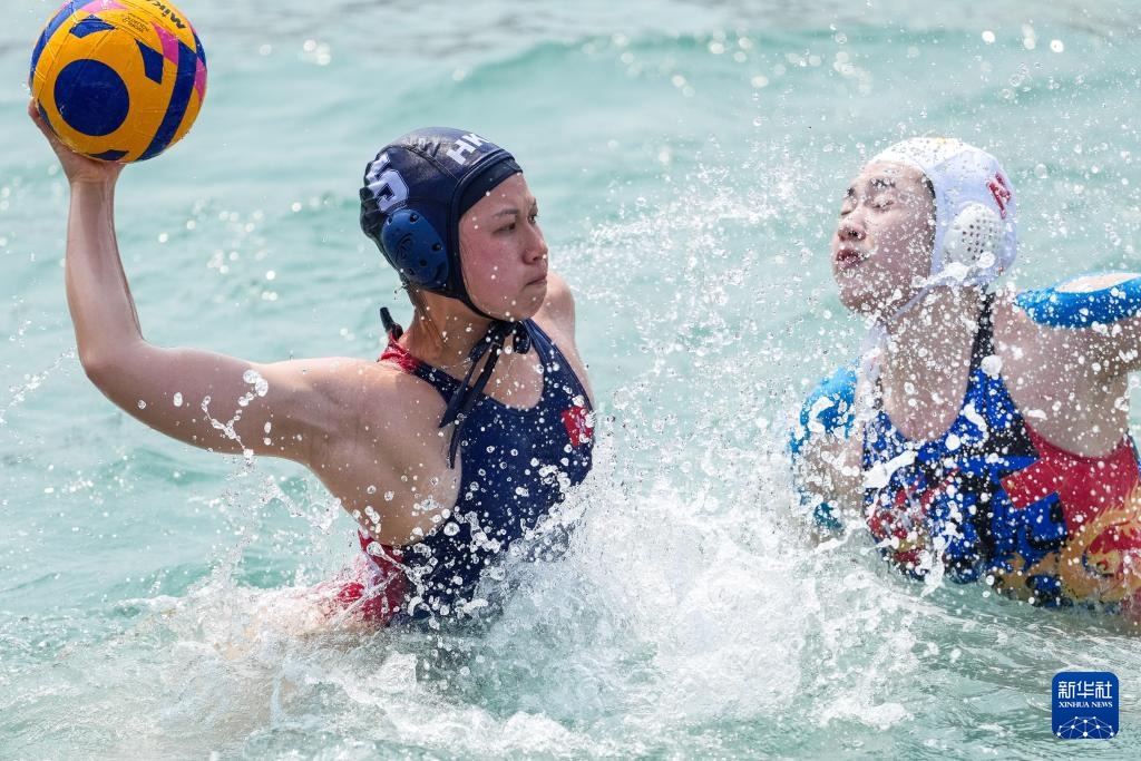 4月22日,在海南三亚举行的第六届亚洲沙滩运动会女子水球单循环决赛中, 中国队3比1战胜中国香港队。